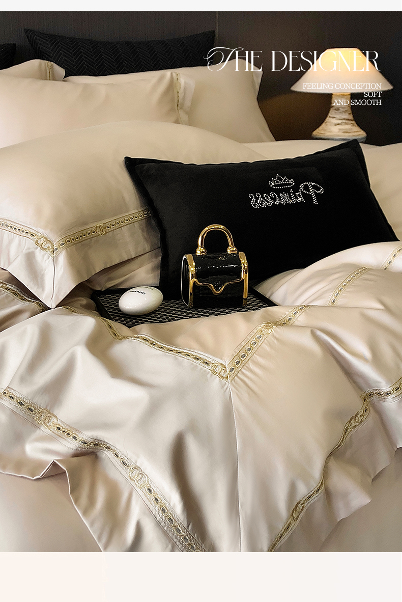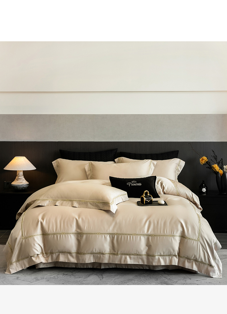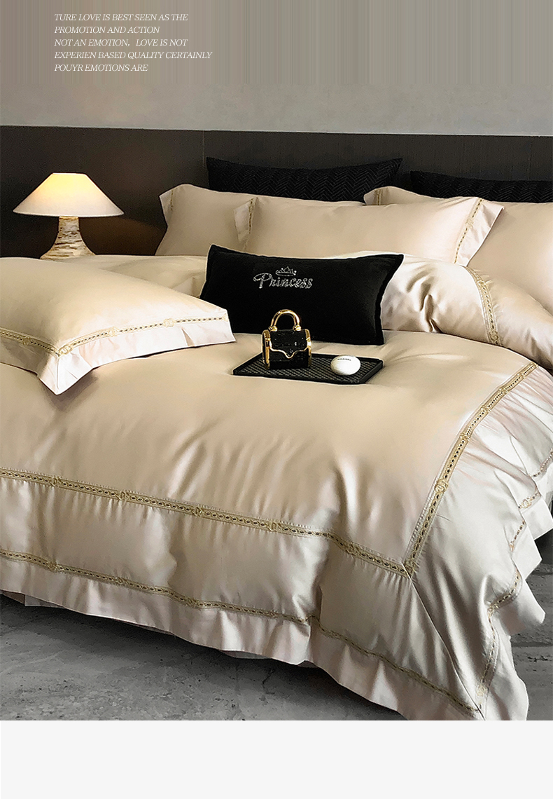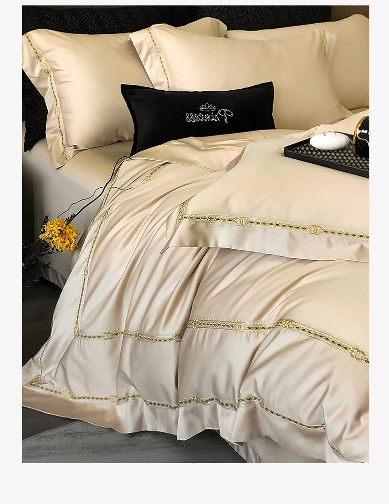 2025新款全棉长绒棉刺绣四件套-慕研 慕研-香槟