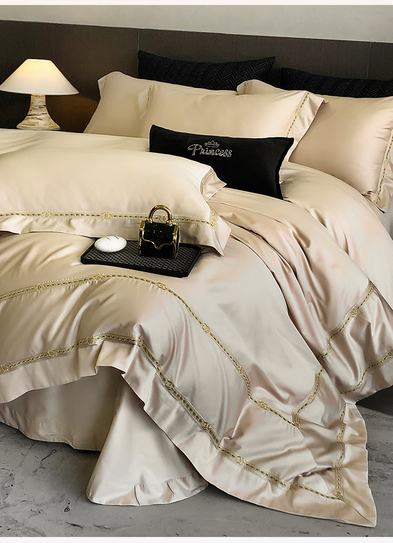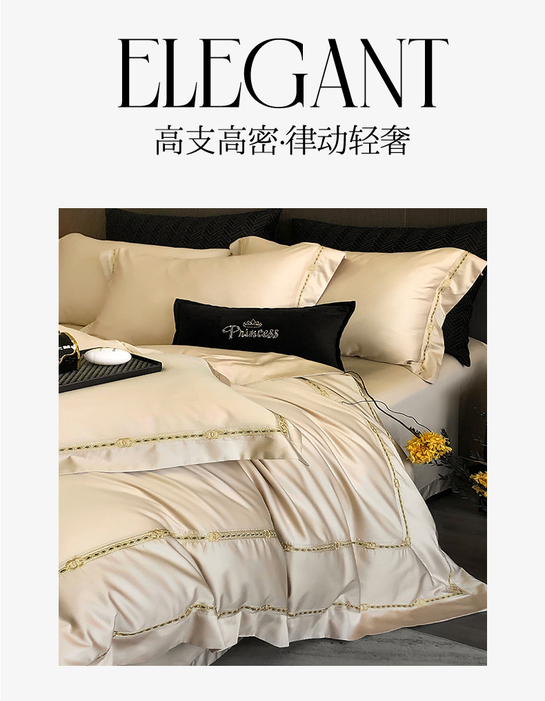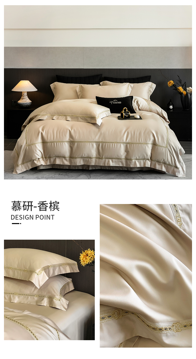 商品名称:2025新款全棉长绒棉刺绣四件套-慕研 慕研-香槟