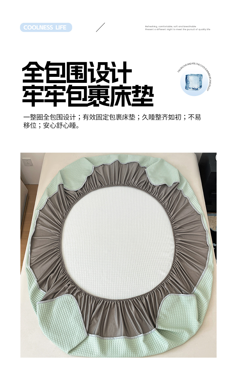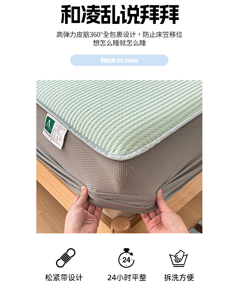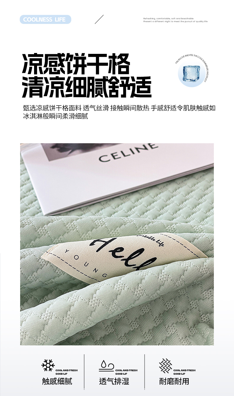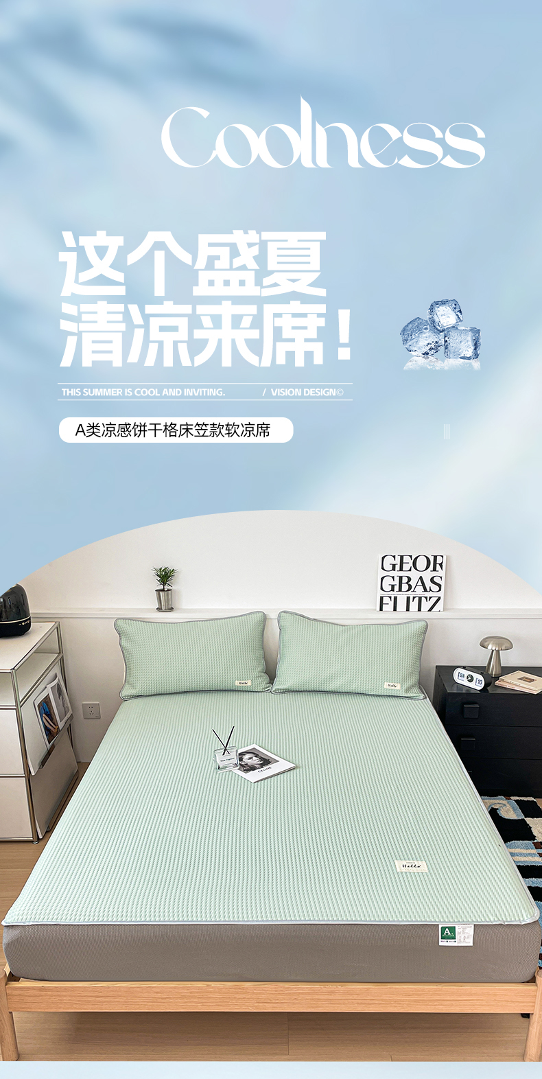 商品名称:吉象2025新款A类床笠款软凉席 饼干格抹茶绿