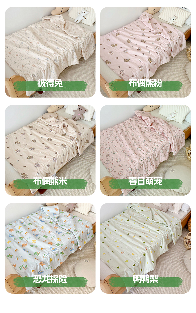 (总)BOSS 2025新款天丝棉大豆夏凉被儿童夏被幼儿园中大童空调被,彼得兔,布偶熊粉,布偶熊米,春日萌宠,恐龙探险,鸭鸭梨
