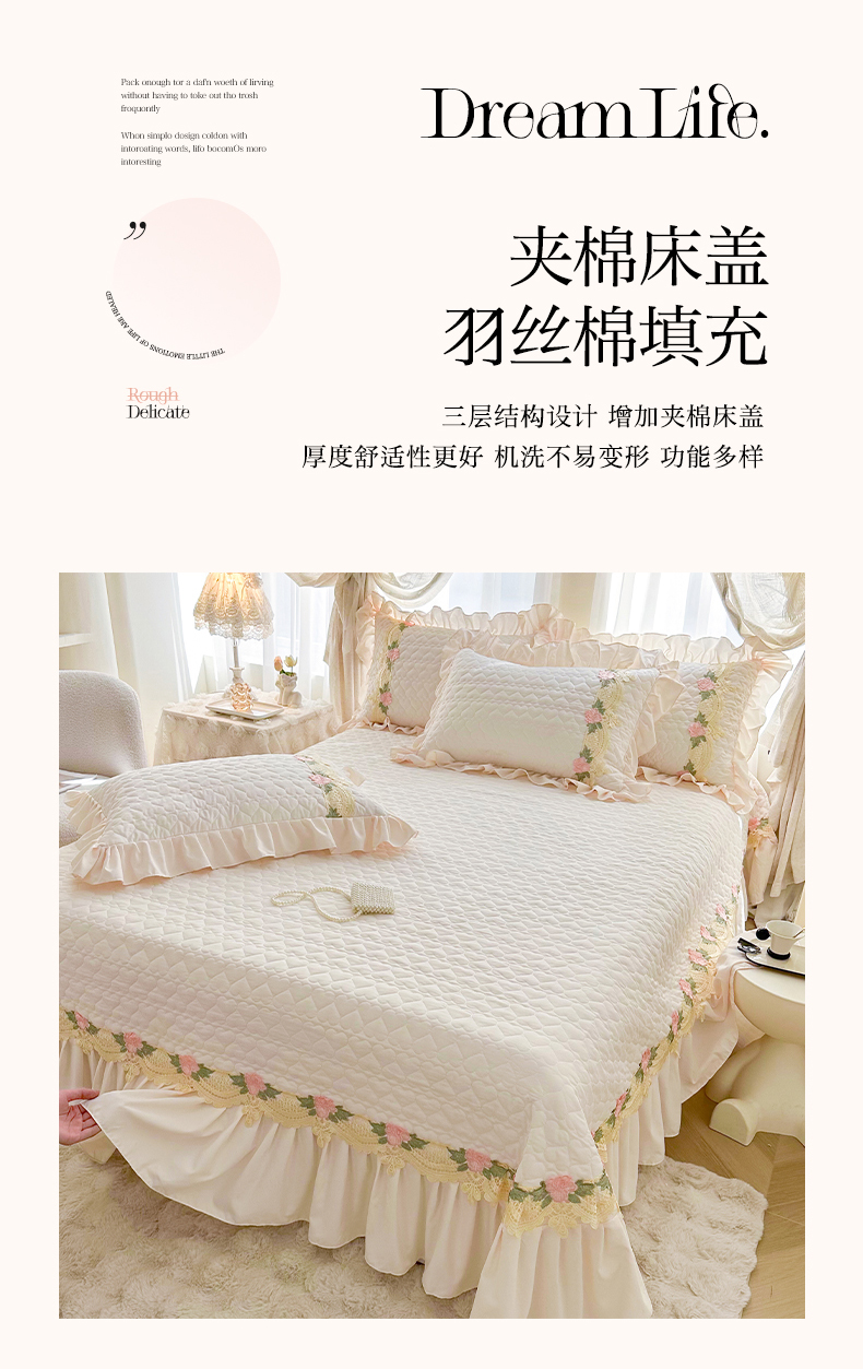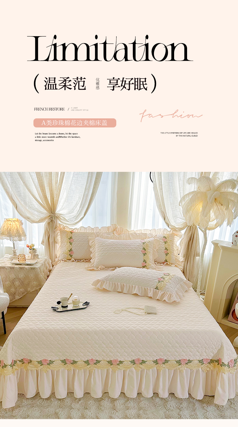 当前位置: 91家纺网 > 商品网购 > 床品套件 > 三件套 > 罗艺轩 2025新款A类珍珠棉全夹棉床盖三件套-玫瑰之恋 玫瑰之恋-荷花白