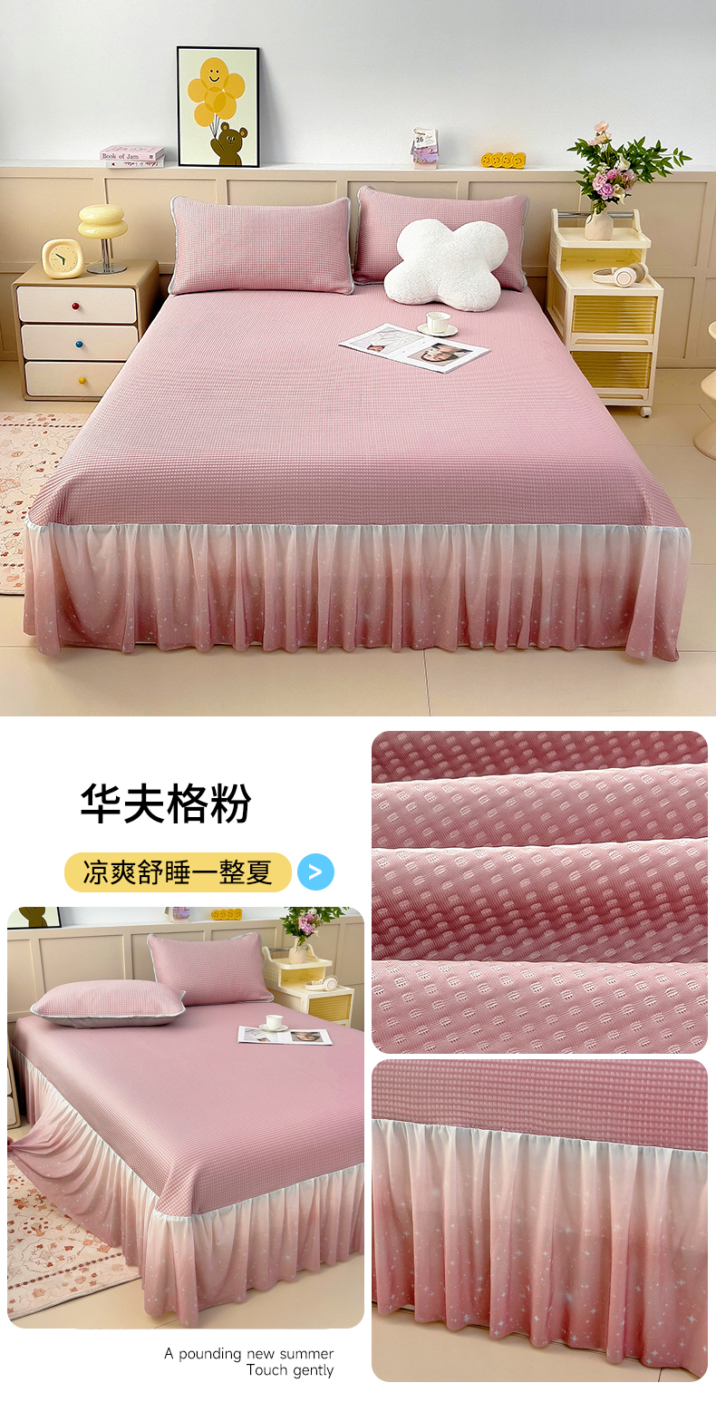 商品名称:情煊 2025新款a类凉感冰豆豆床裙 华夫格粉