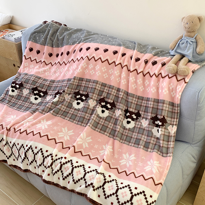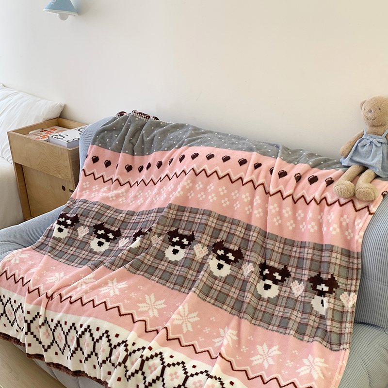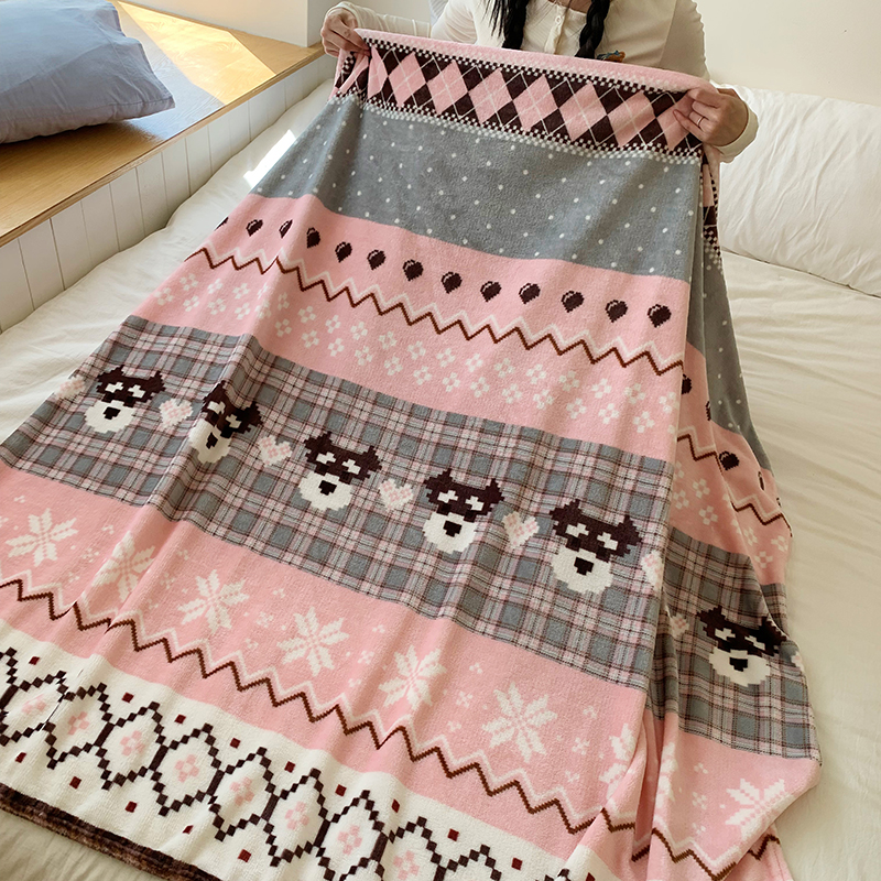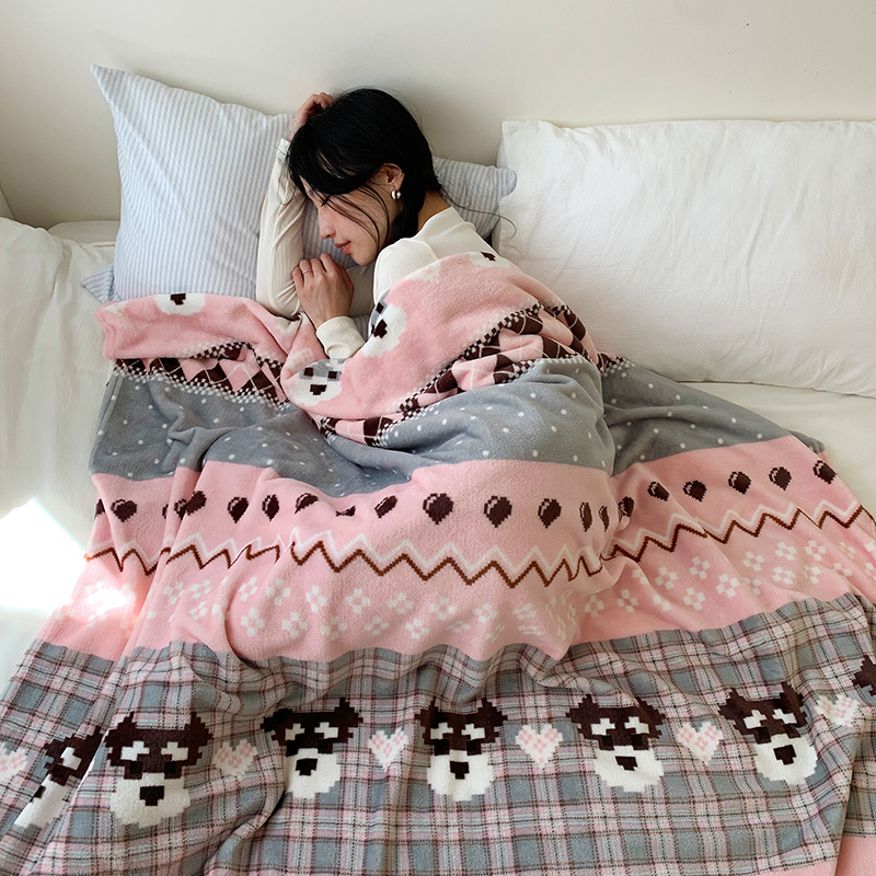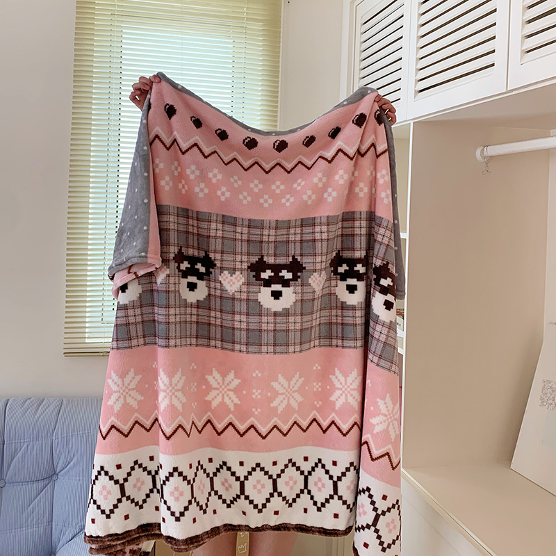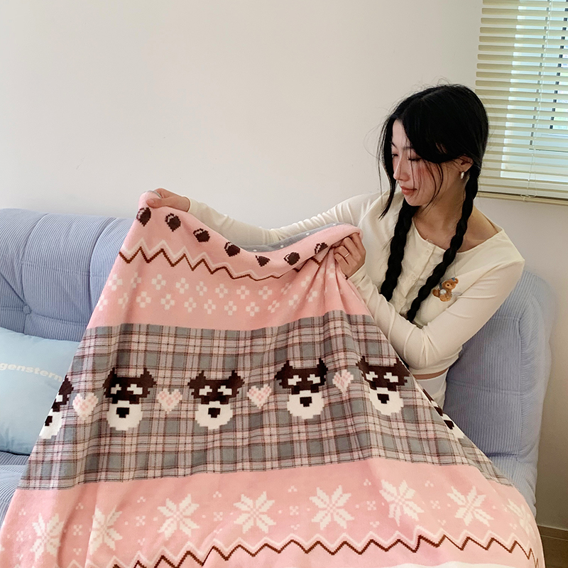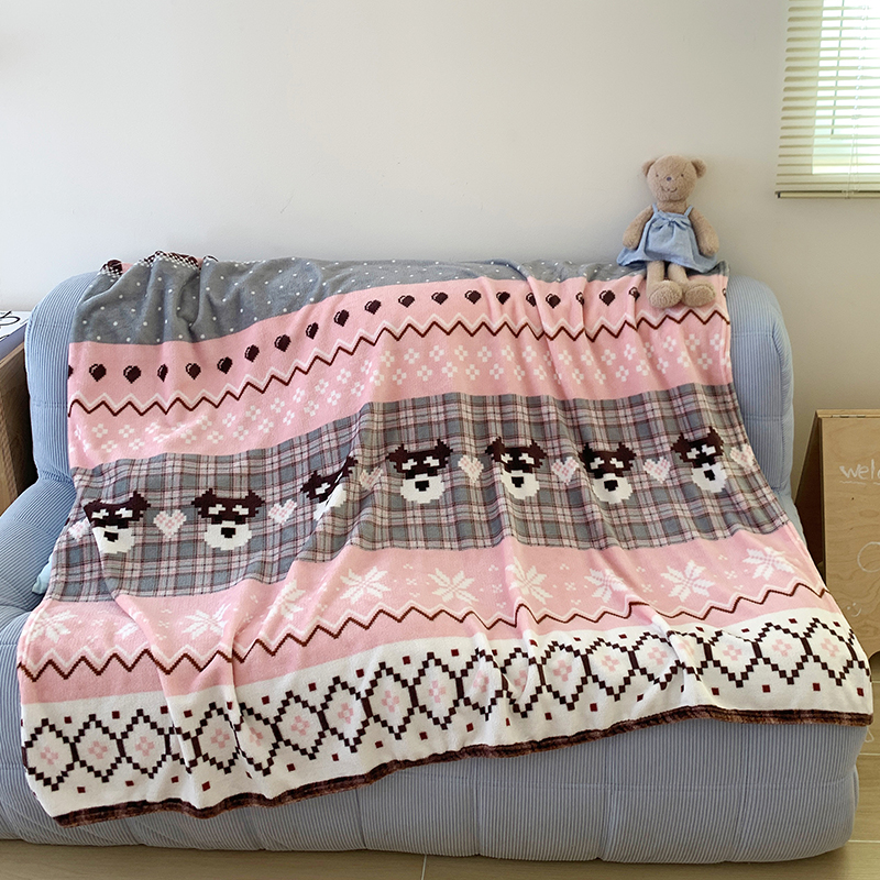 商品名称:桃喜 2025新款春夏双面四季牛奶绒毛毯空调毯(会员-2) 费尔岛狗狗粉