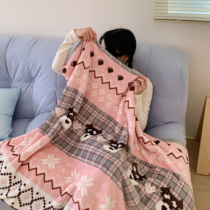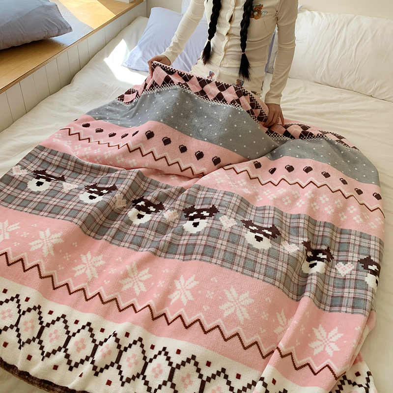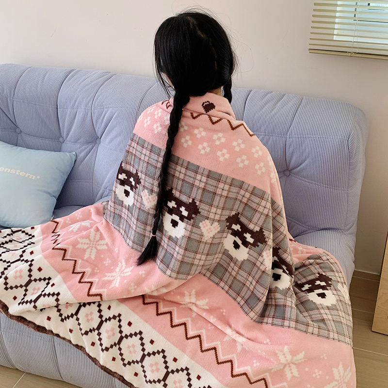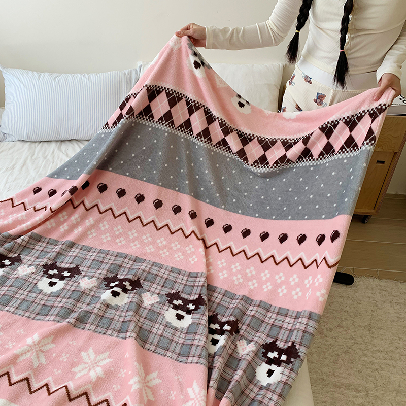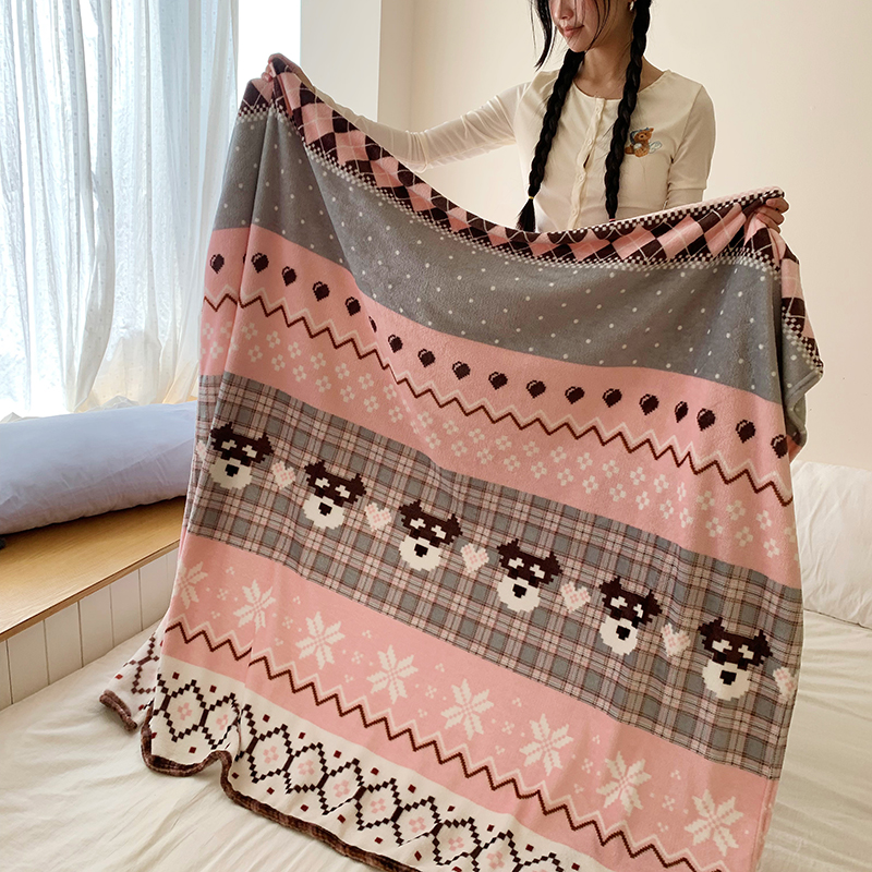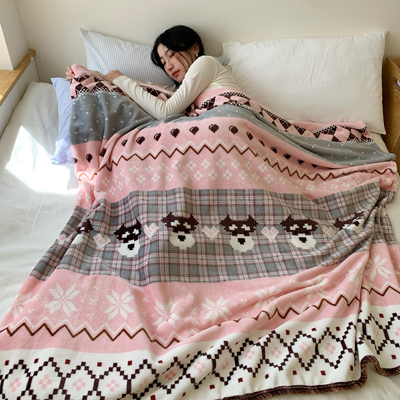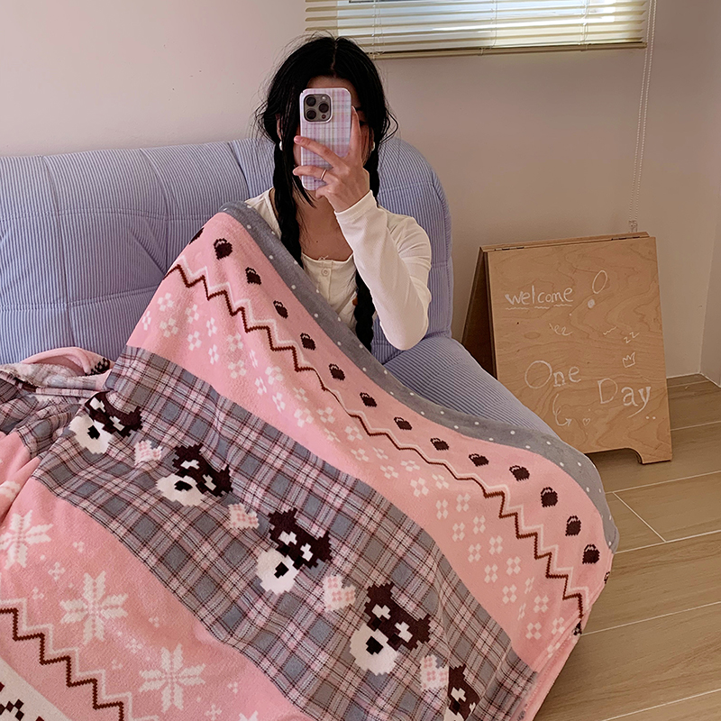 商品名称:桃喜 2025新款春夏双面四季牛奶绒毛毯空调毯(会员-2) 费尔岛狗狗粉