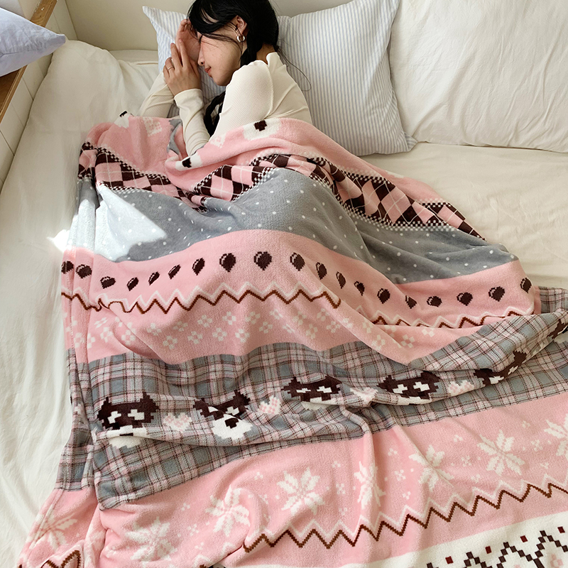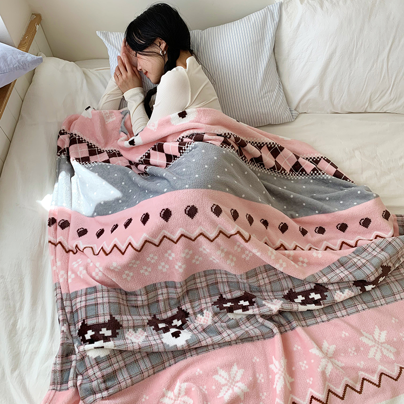 桃喜 2025新款春夏双面四季牛奶绒毛毯空调毯(会员-2) 费尔岛狗狗粉