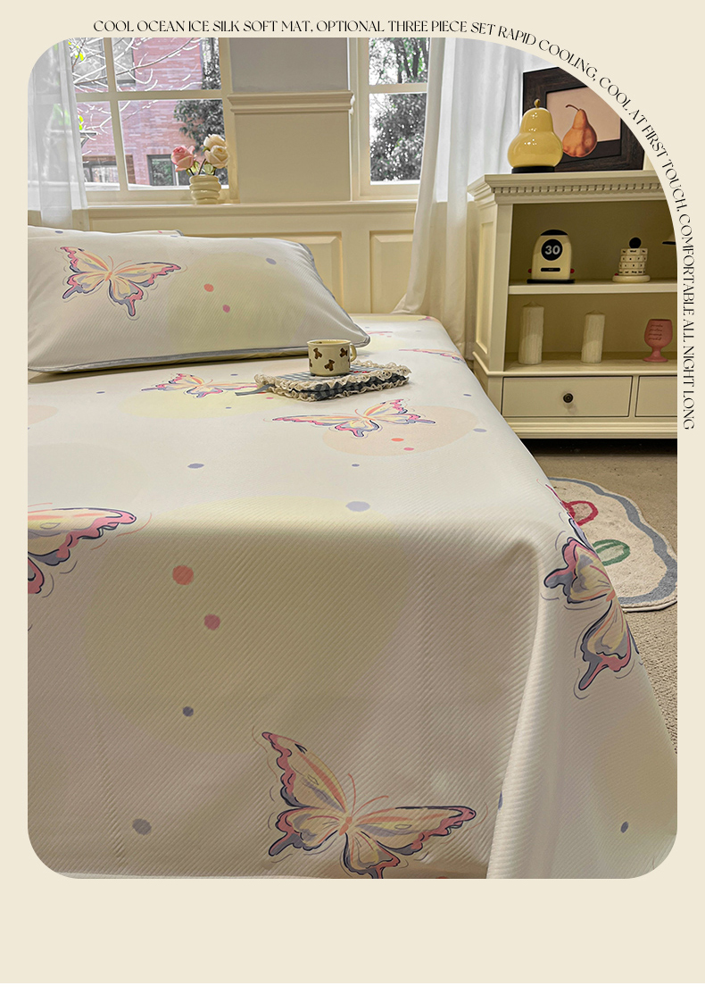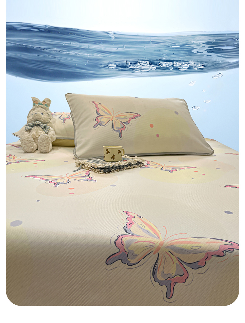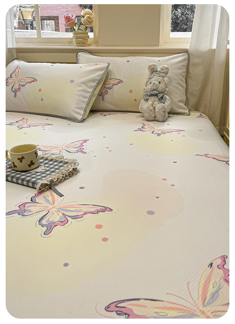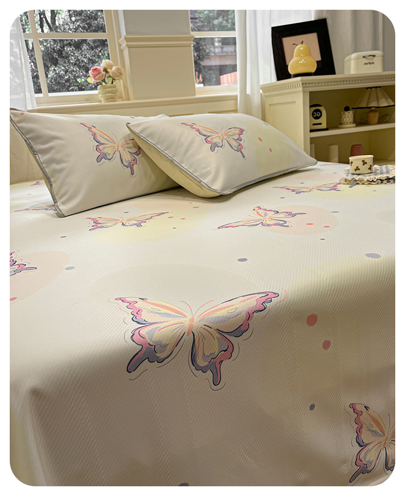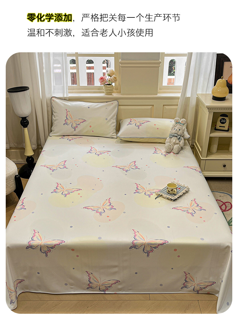 星座家纺 2025新款斜纹提花凉感丝凉席床单款三件套 彩蝶
