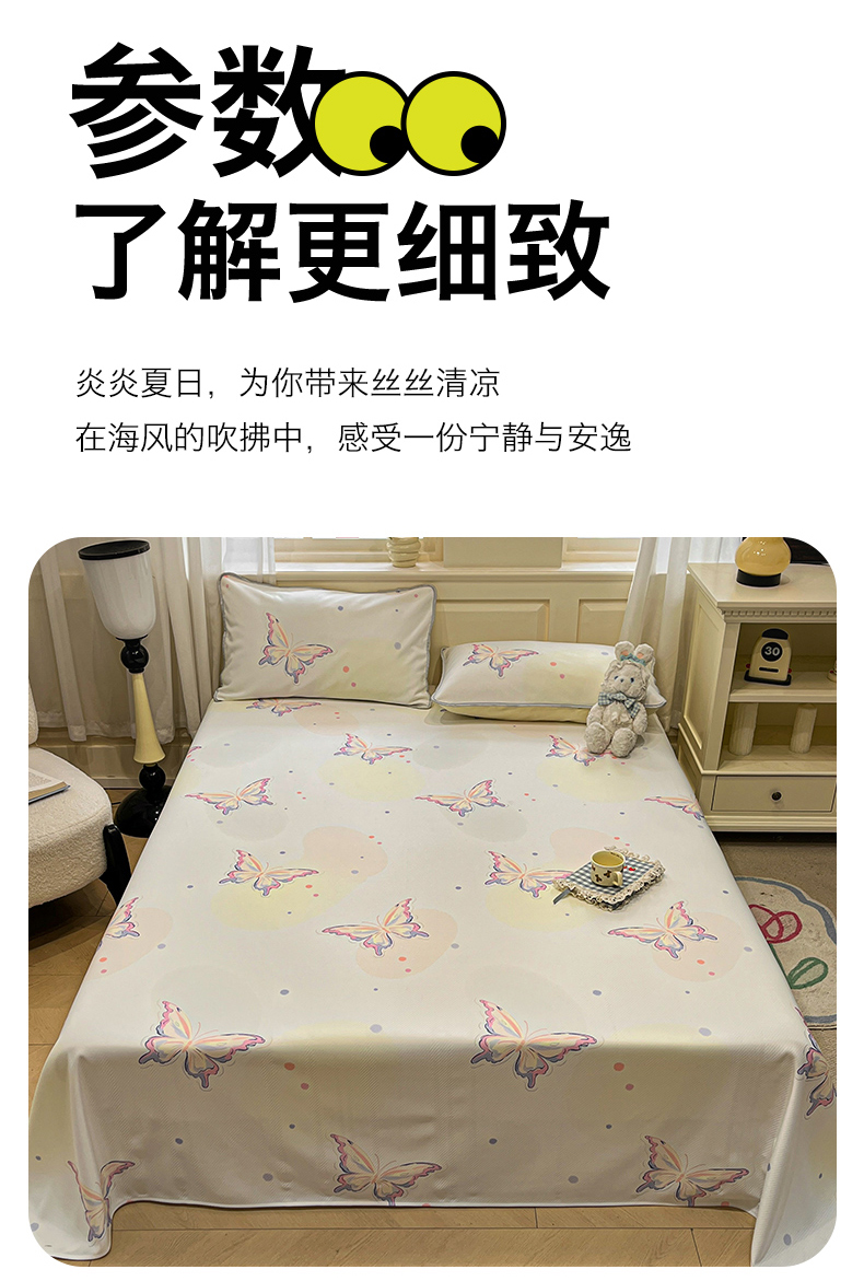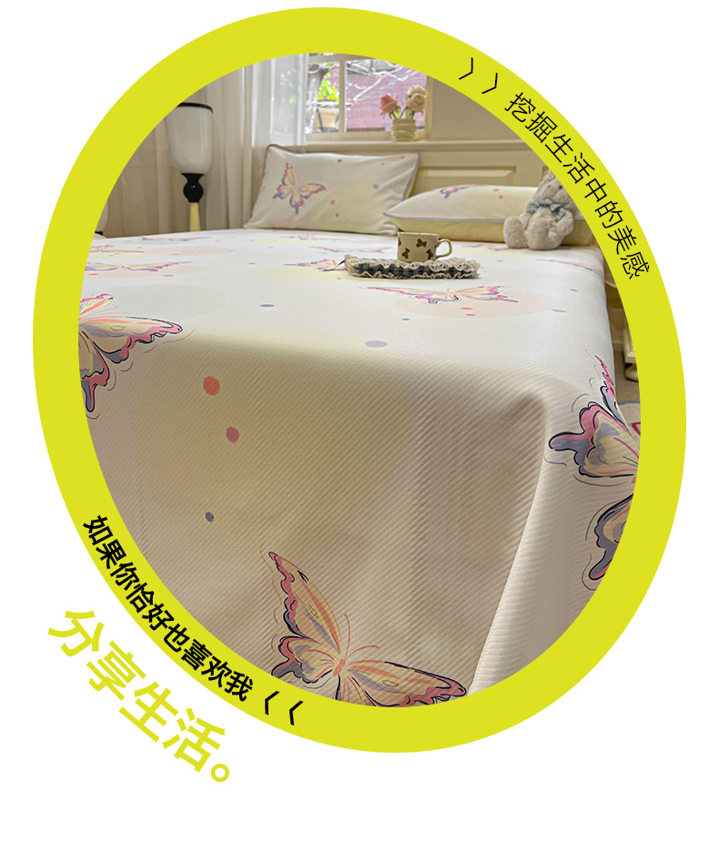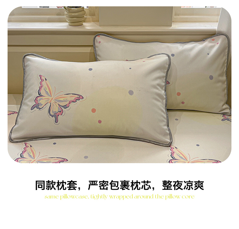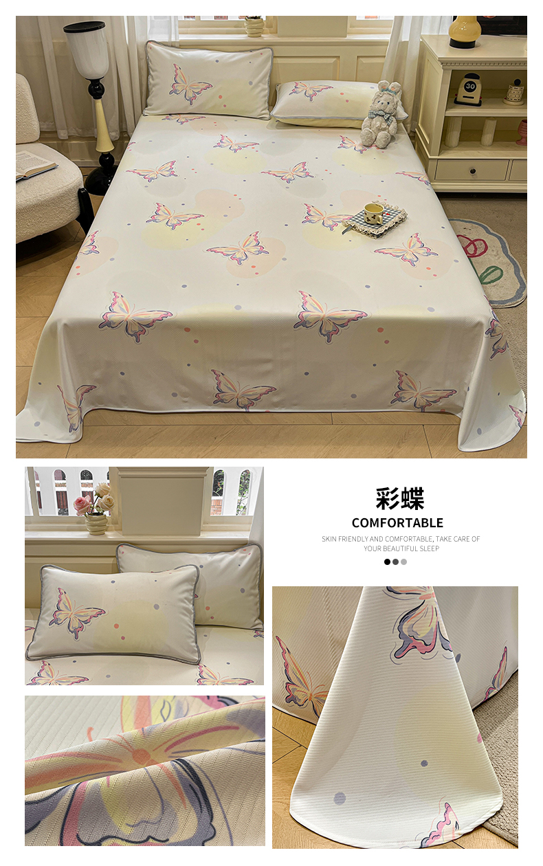 商品名称:星座家纺 2025新款斜纹提花凉感丝凉席床单款三件套 彩蝶