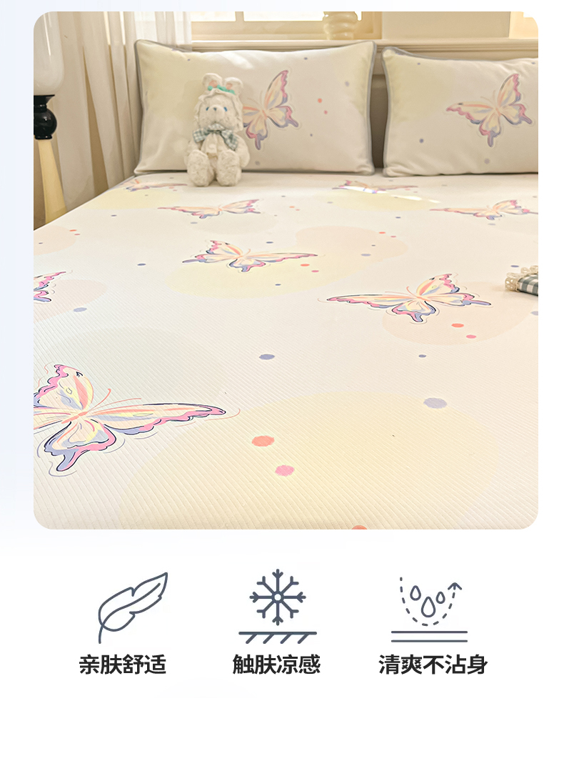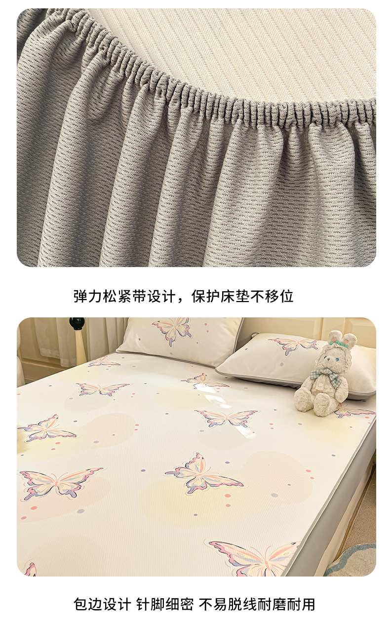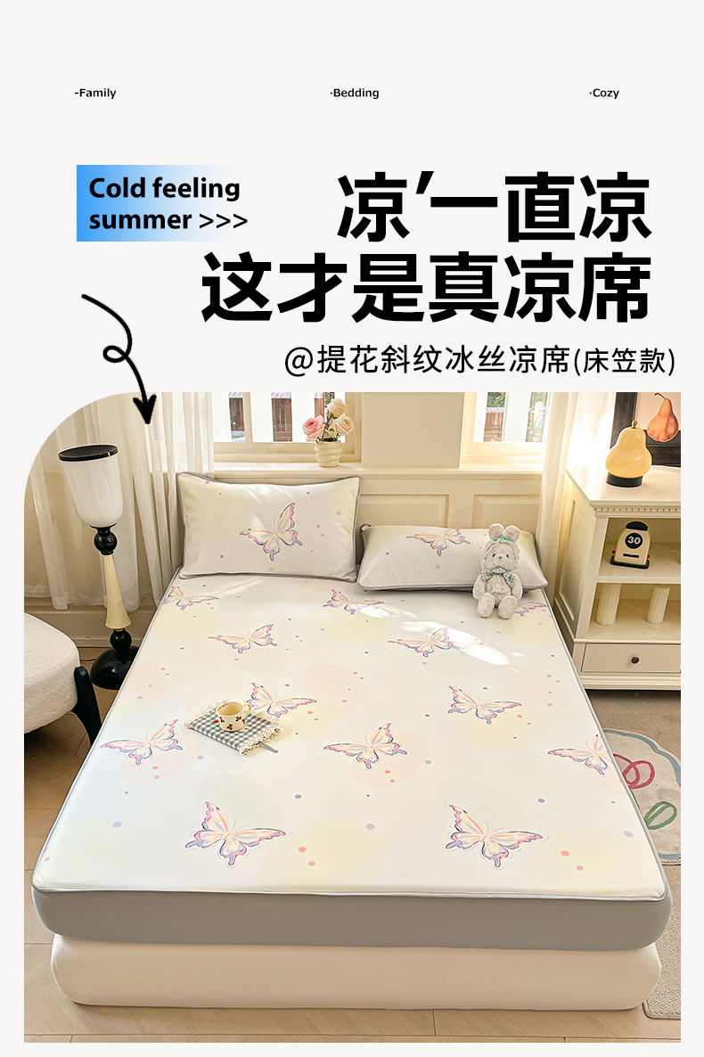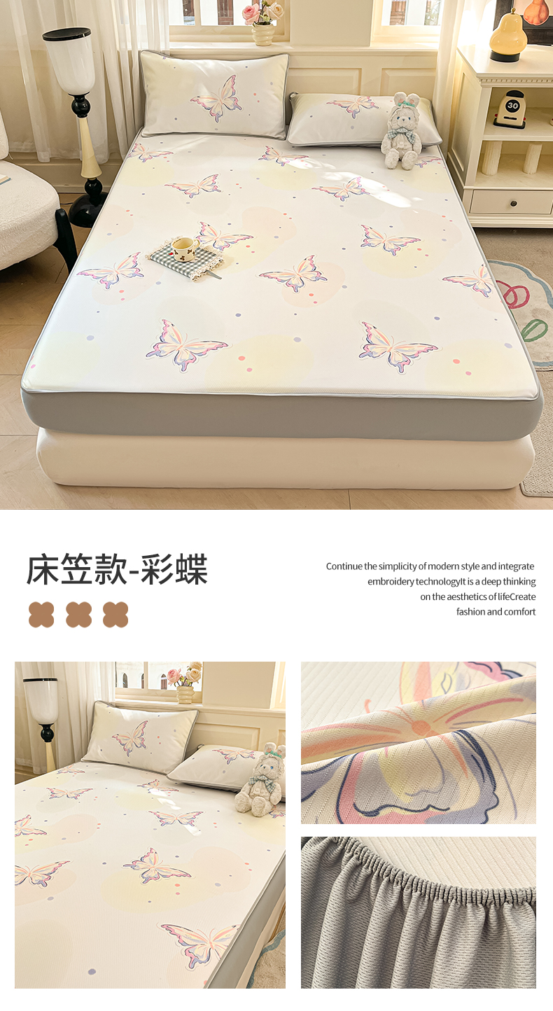 星座家纺 2025新款斜纹提花凉感丝凉席床笠款三件套 床笠-彩蝶