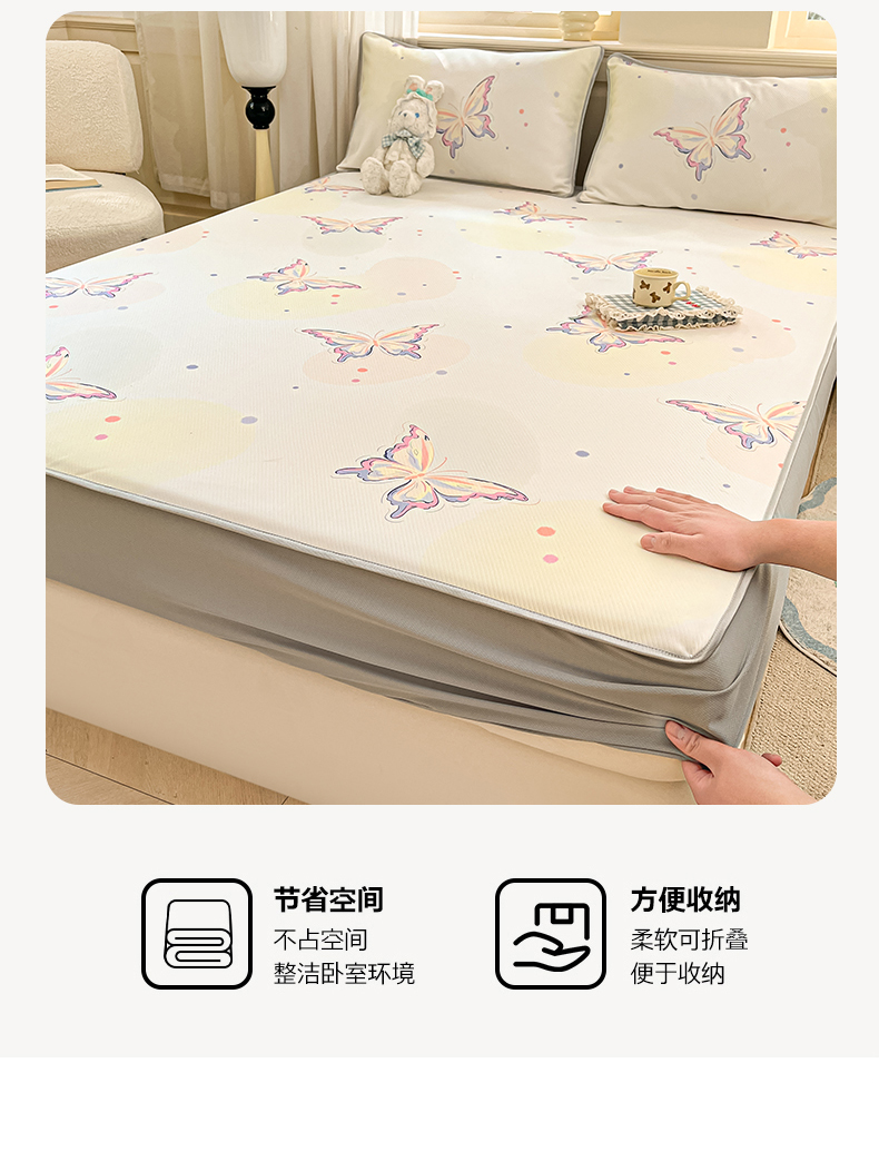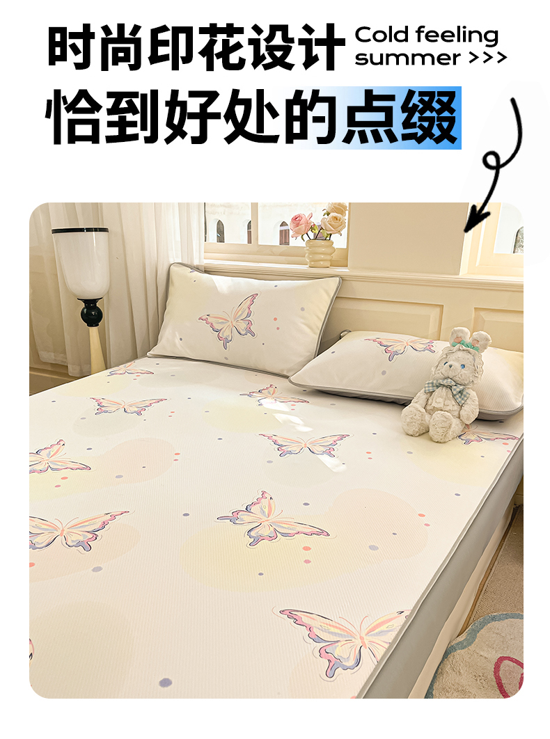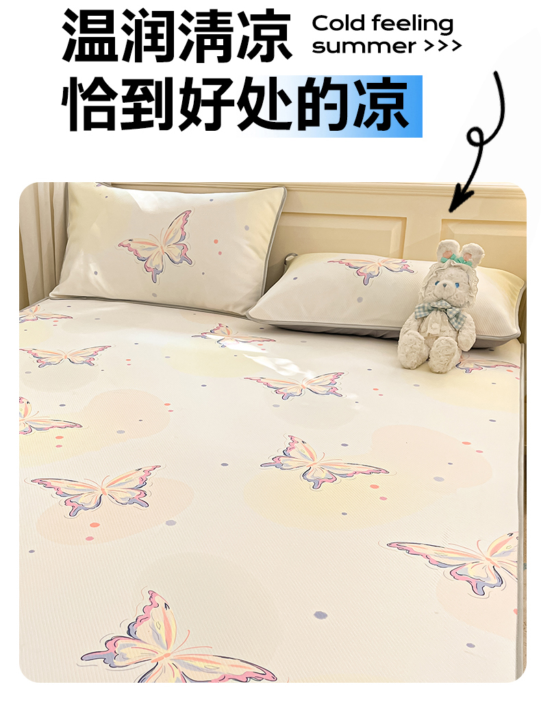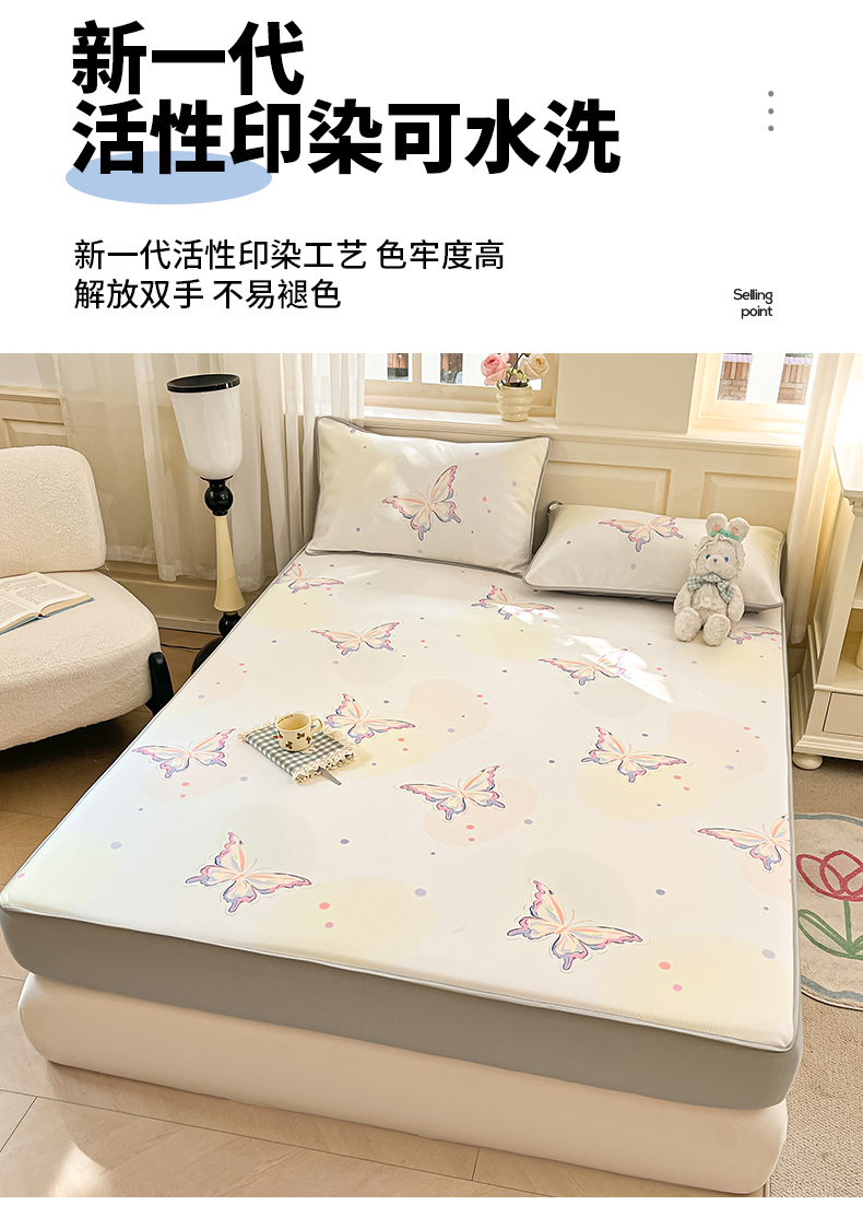 星座家纺 2025新款斜纹提花凉感丝凉席床笠款三件套 床笠-彩蝶