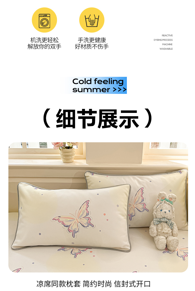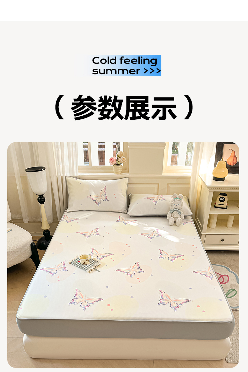 商品名称:星座家纺 2025新款斜纹提花凉感丝凉席床笠款三件套 床笠-彩蝶