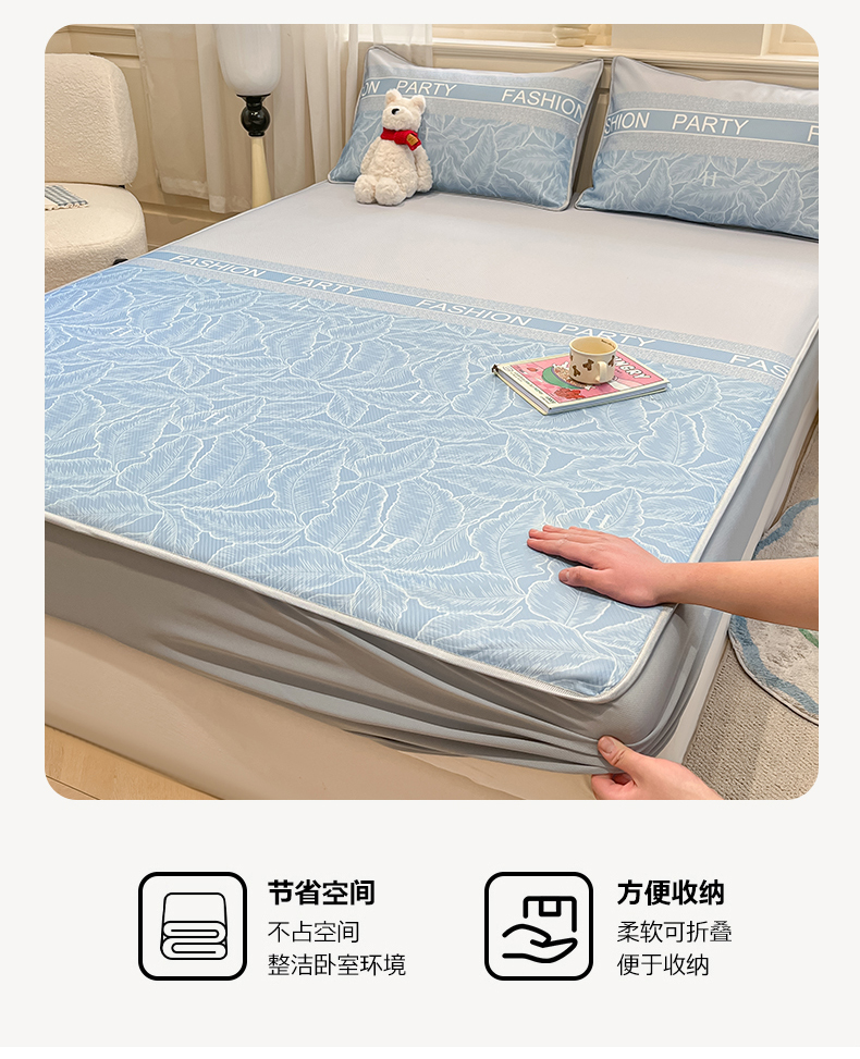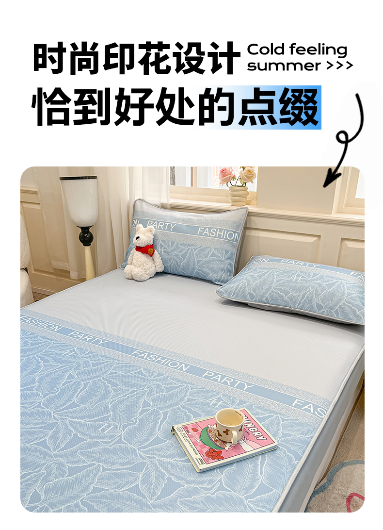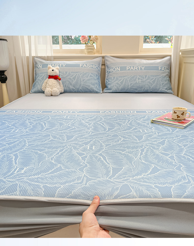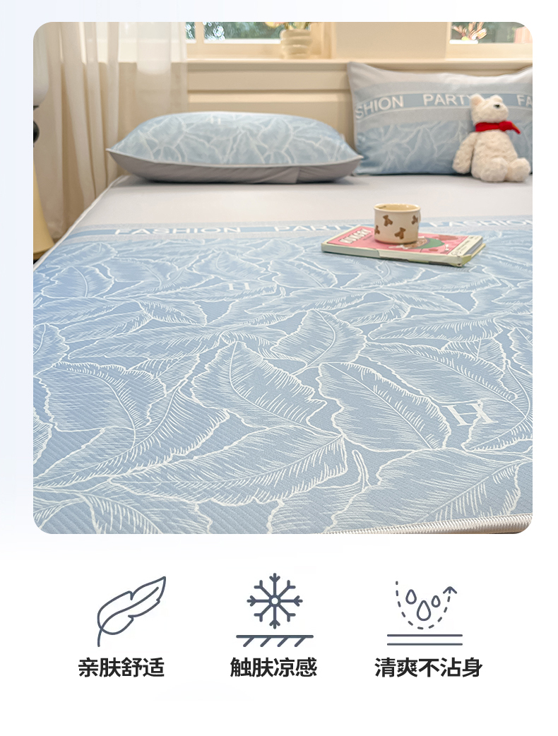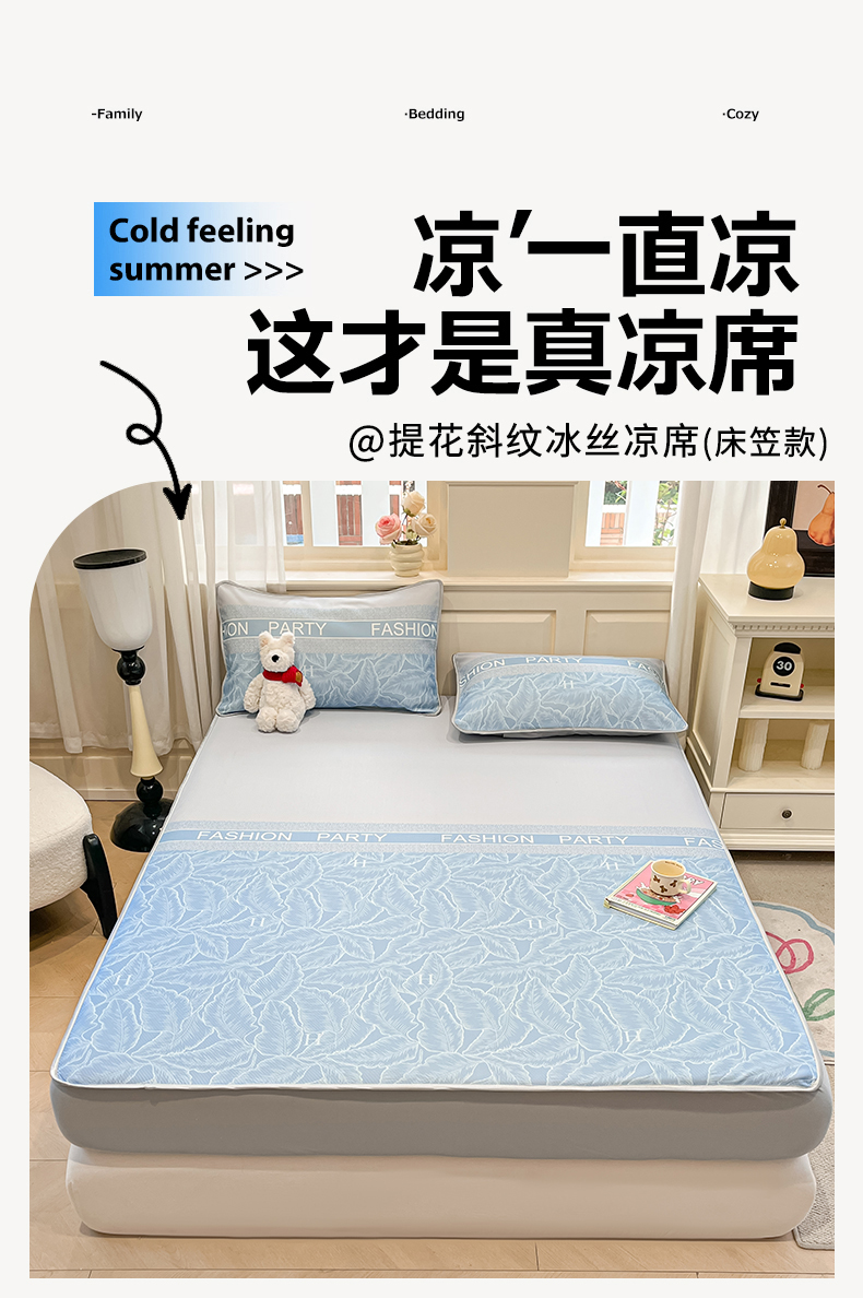 星座家纺 2025新款斜纹提花凉感丝凉席床笠款三件套 床笠-叶之语-蓝