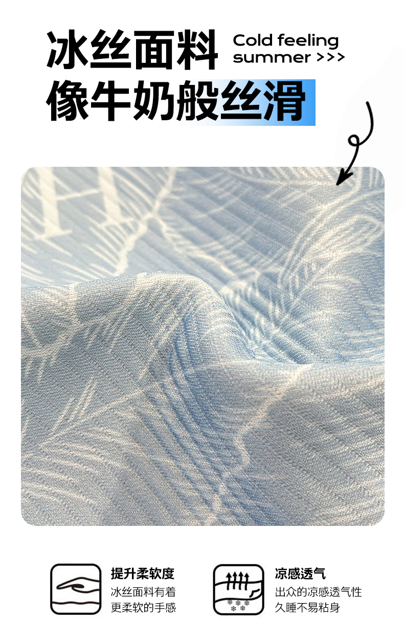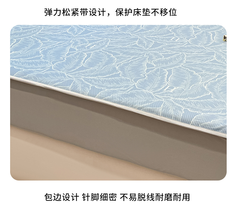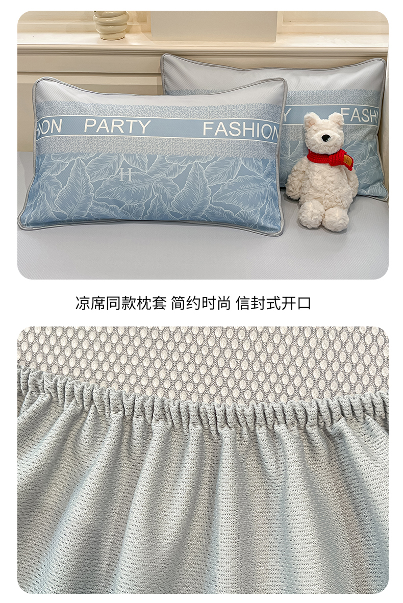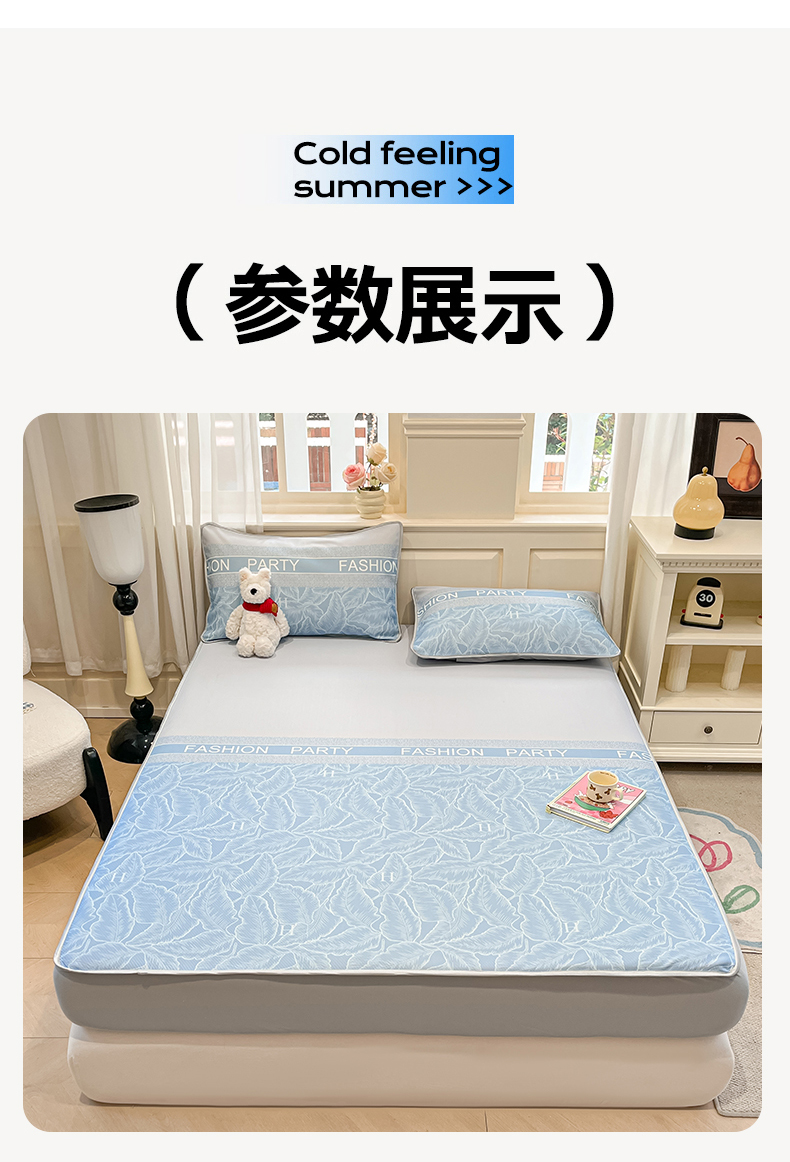 星座家纺 2025新款斜纹提花凉感丝凉席床笠款三件套 床笠-叶之语-蓝