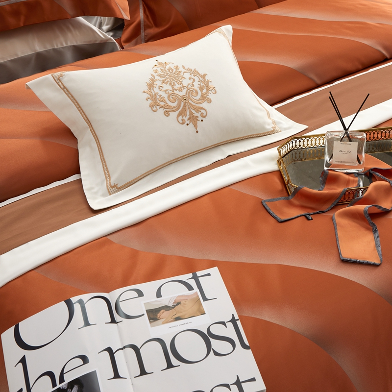 (总)赫本真丝馆(珍丝纺) 2025新款真丝天丝交织双丝四件套,德尔萨,欧瑞纳-橙,欧瑞纳-绿