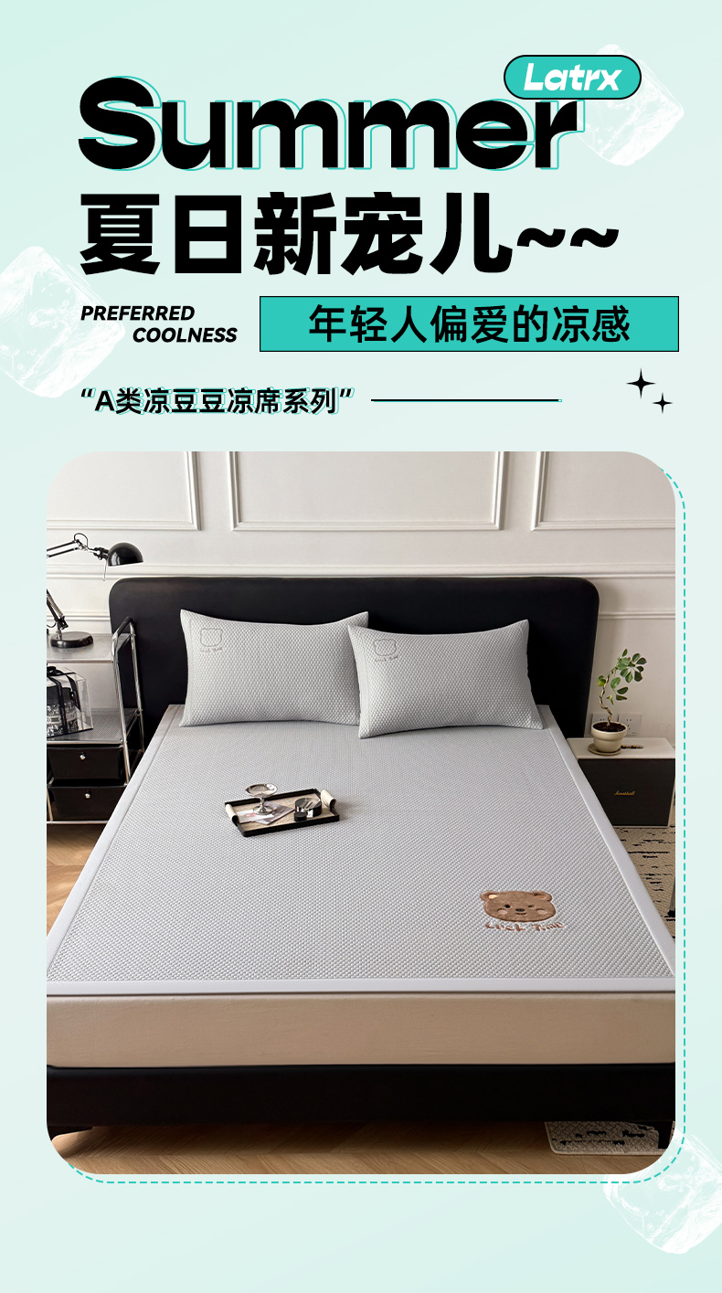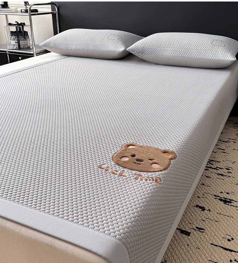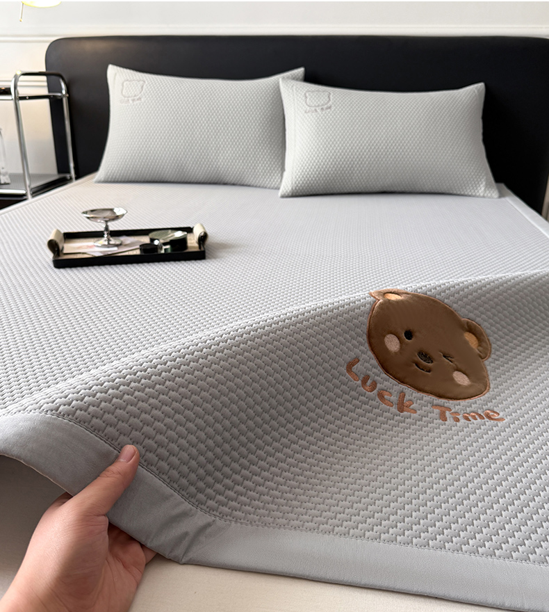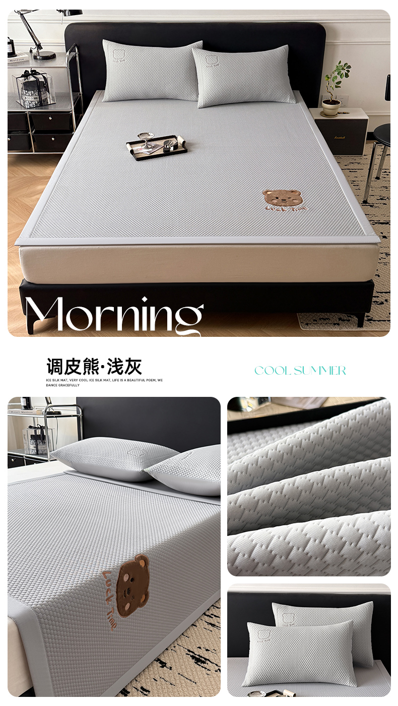 商品名称:全季家居 2025新款A类乙纶PE调皮熊贴布绣系列凉豆豆席凉席席子 床笠款-浅灰