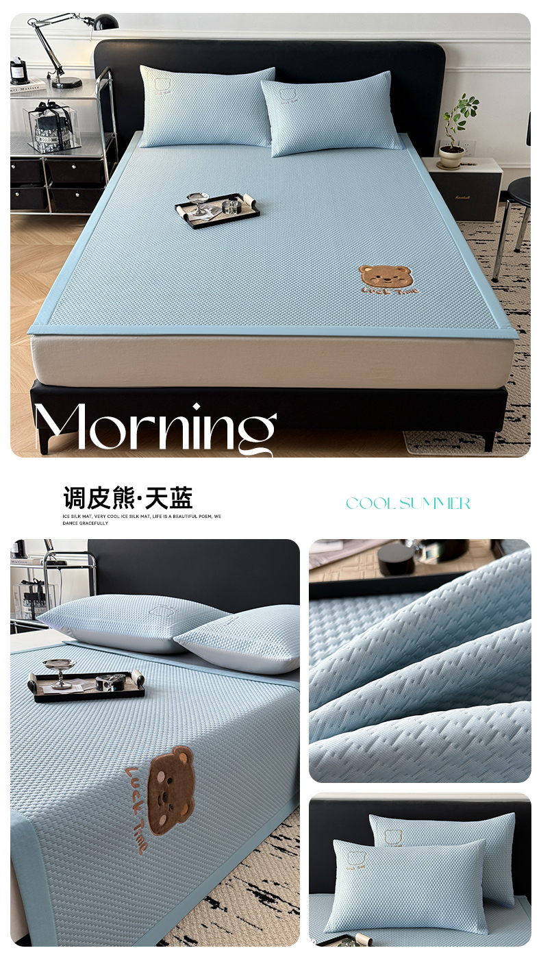 (总)全季家居 2023新款纯色凉感丝刺绣凉席,天蓝,灰色,粉色,绿色,草绿