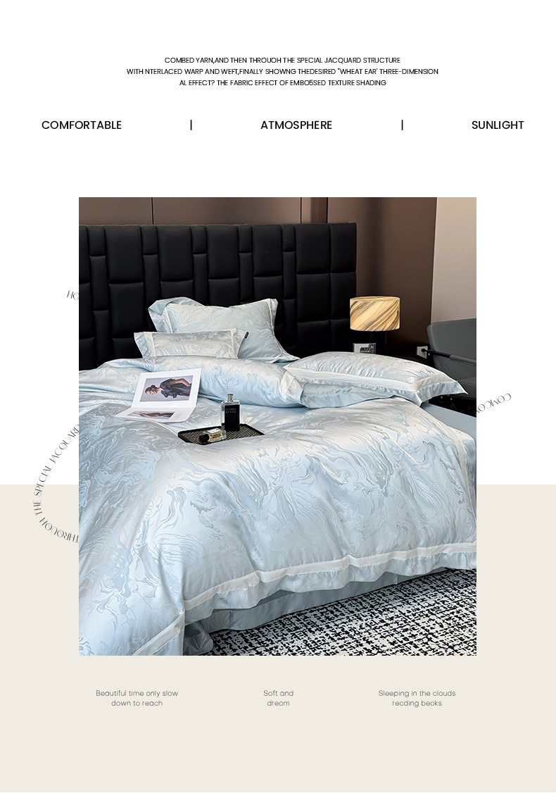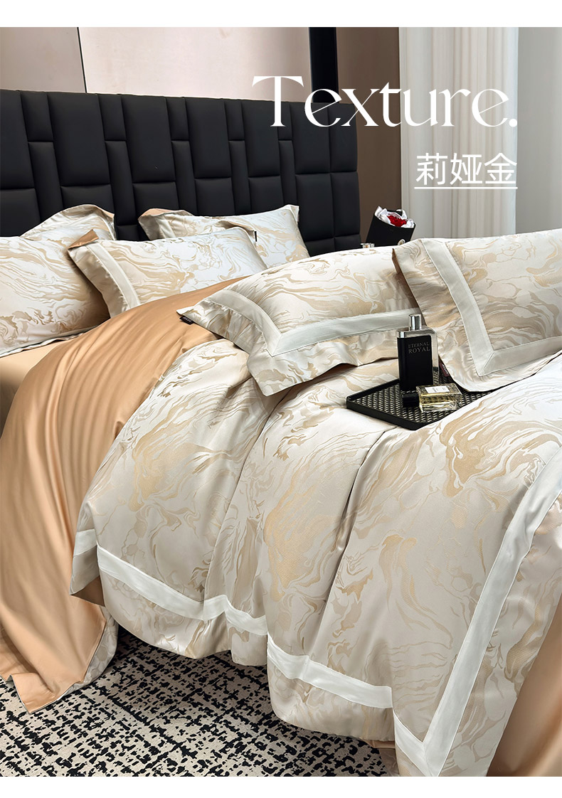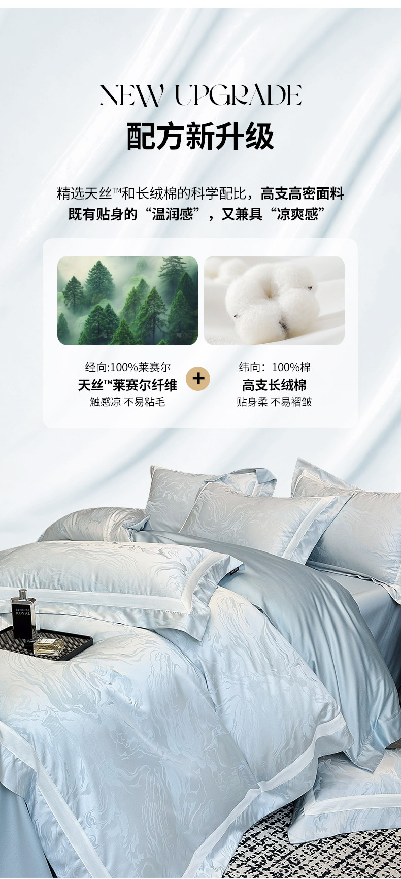 当前位置: 91家纺网 > 商品网购 > 床品套件 > 四件套 > 莱赛尔四件套 > (总) 2025新品床上用品高端A类100支天丝棉贡缎提花四件套全棉纯棉长绒棉夏季轻奢真丝全工艺