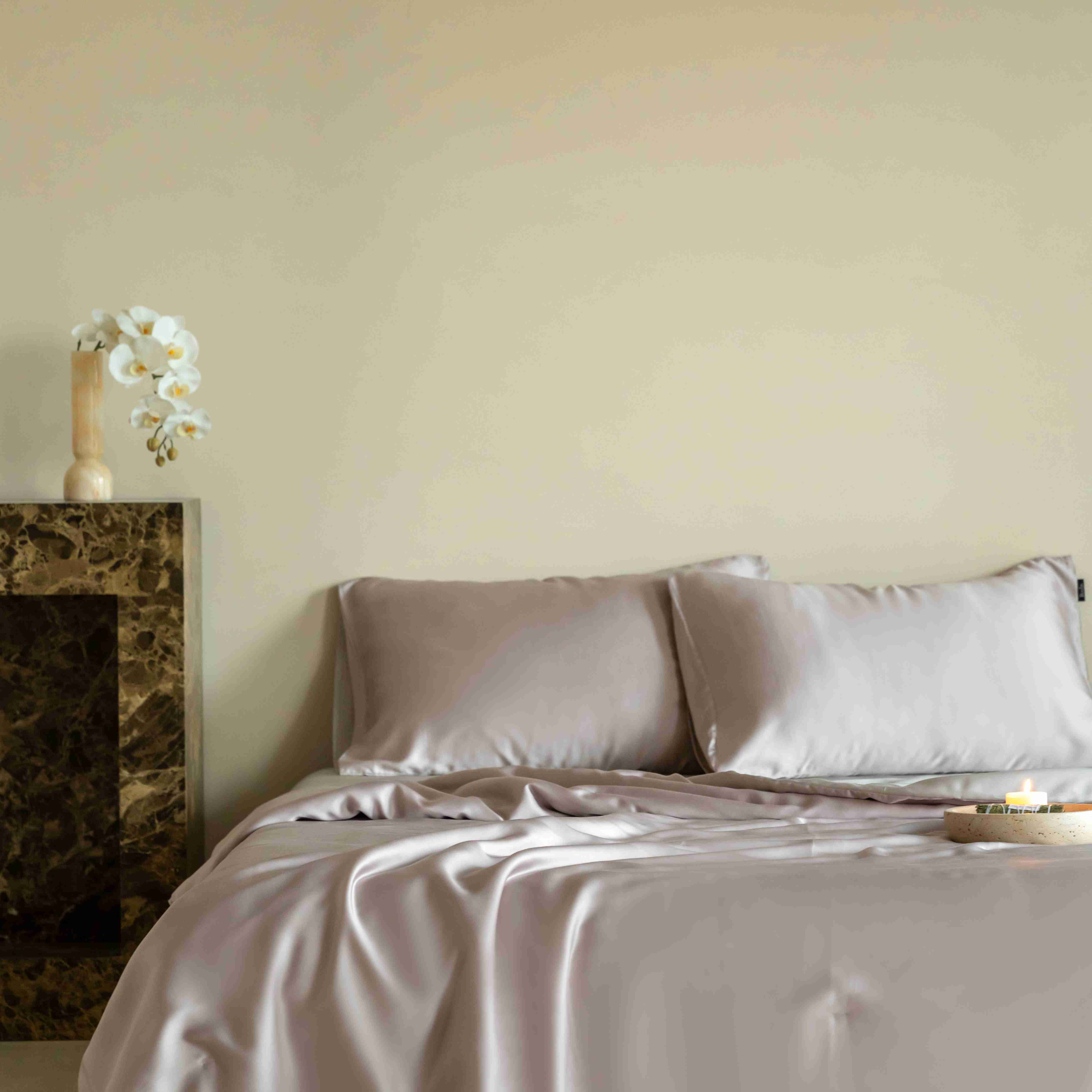 (总)玉宇阁家居 2023新款春夏60支兰精天丝拼色四件套,都市灰香槟,海盐松露,芥末黄香槟,裸粉香槟,茉莉奶绿,浅灰鹅黄,若草乳白