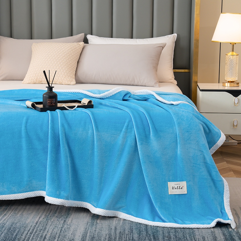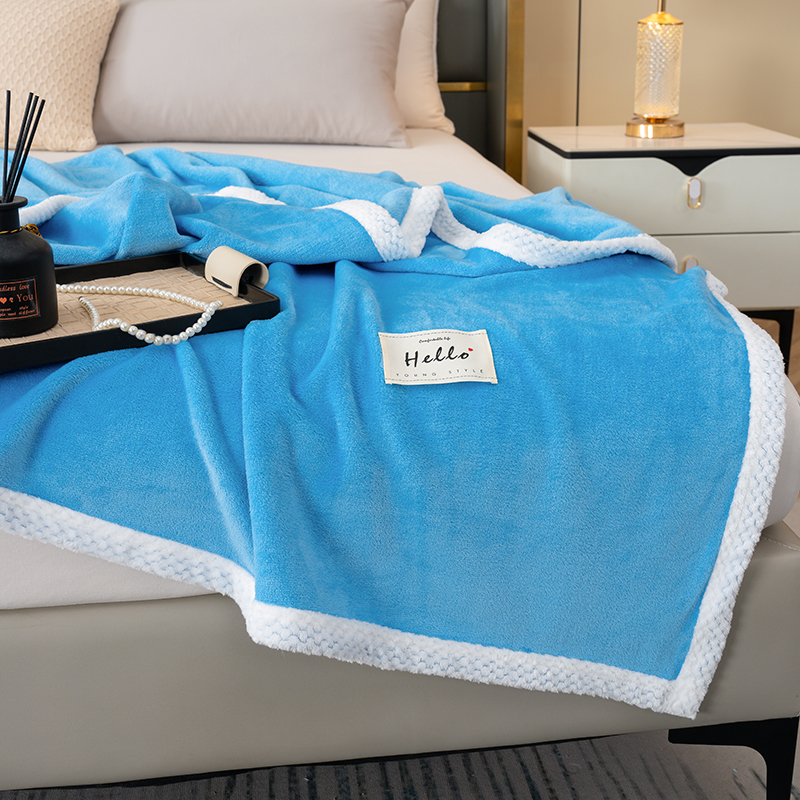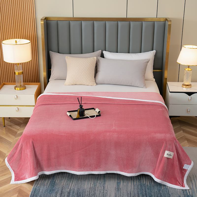 好多家纺 2025新款亲肤纯色包边盖毯毯子 浅绿,浅绿