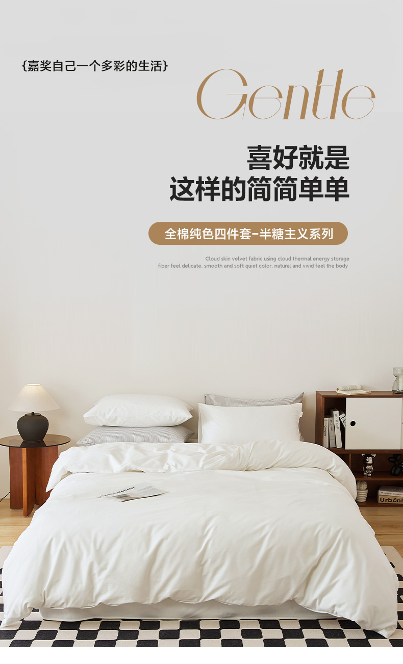当前位置: 91家纺网 > 商品网购 > 床品套件 > 四件套 > 全棉普通四件套 > EH家居 2025新款春夏40支全棉斜纹四件套-半糖主义系列 半糖-纯白