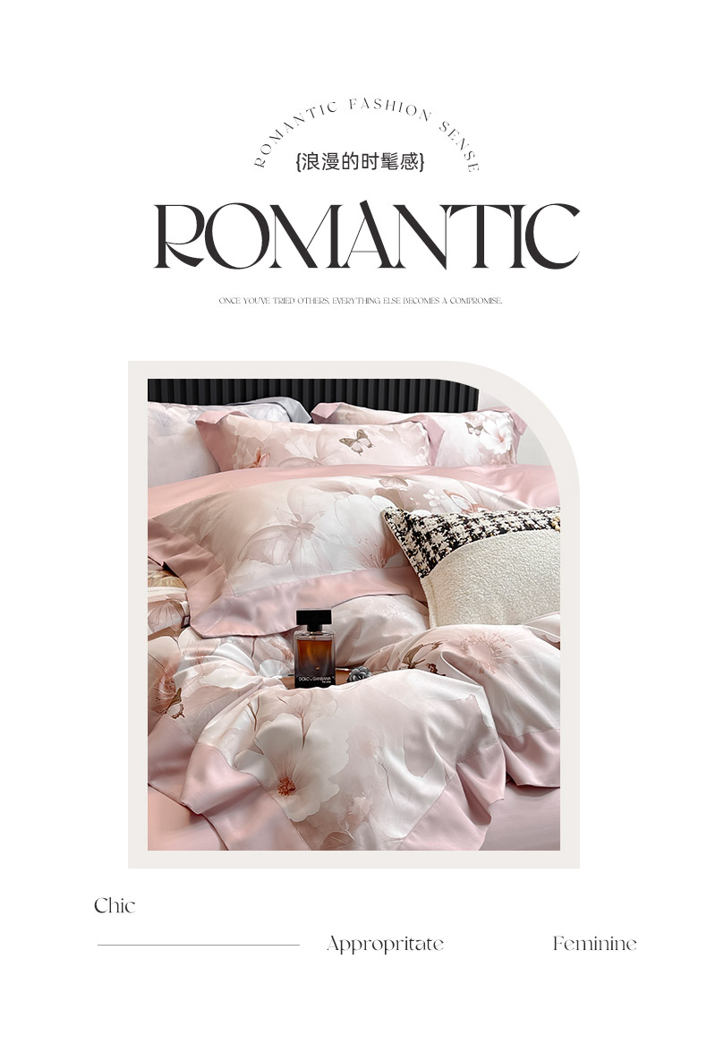2025夏季A类母婴级天丝棉印花四件套纯棉全棉高端数码印花丝滑裸睡长绒棉被套真丝床上用品 蝶织梦-粉