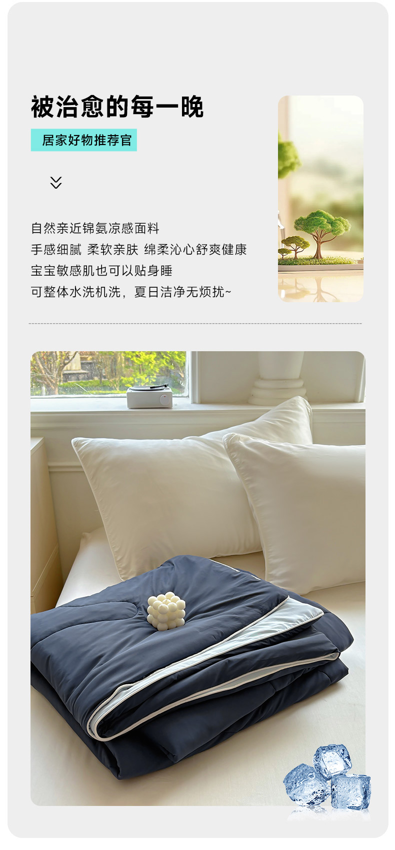 百寐 2025新款A类160克88%锦纶+12%氨纶锦氨夏被纯色夏凉被空调被 亚朵兰+浅蓝