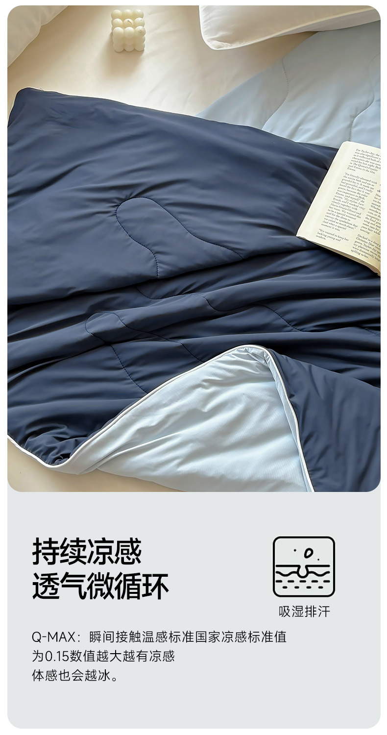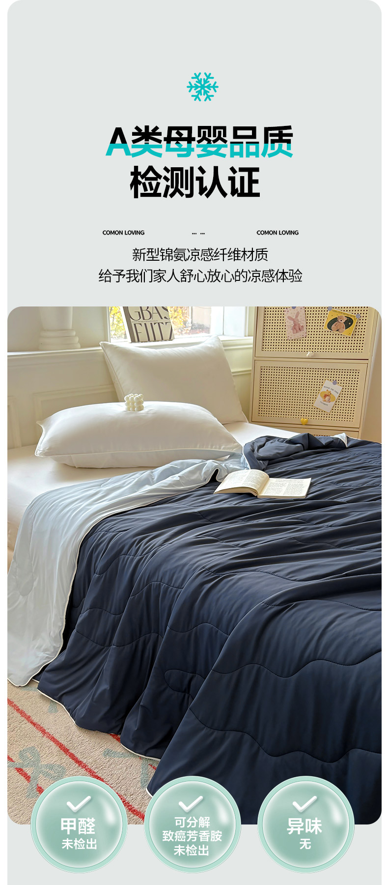 商品名称:百寐 2025新款A类160克88%锦纶+12%氨纶锦氨夏被纯色夏凉被空调被 亚朵兰+浅蓝