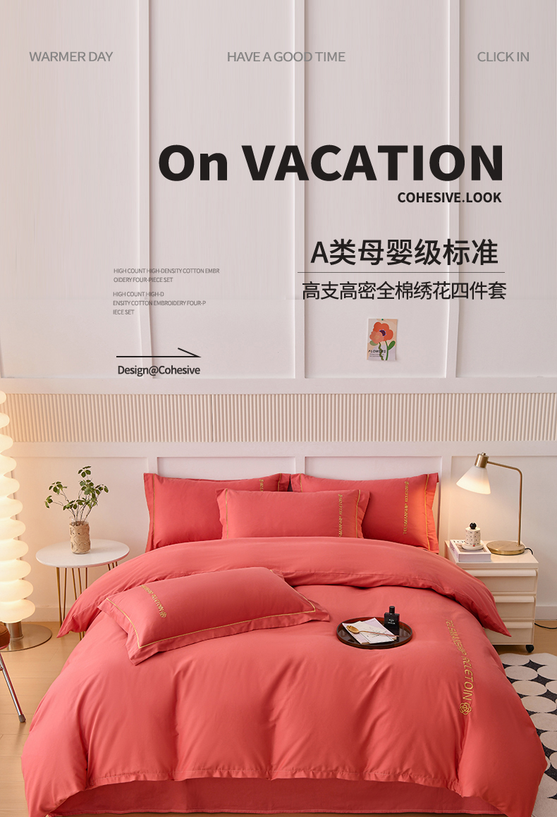 当前位置: 91家纺网 > 商品网购 > 床品套件 > 四件套 > 全棉普通四件套 > 宇彬家纺 2025直播热新款13374全棉母婴级压线纯色刺绣四件套全棉贡缎新疆长绒字母款轻奢 山茶-宝石红