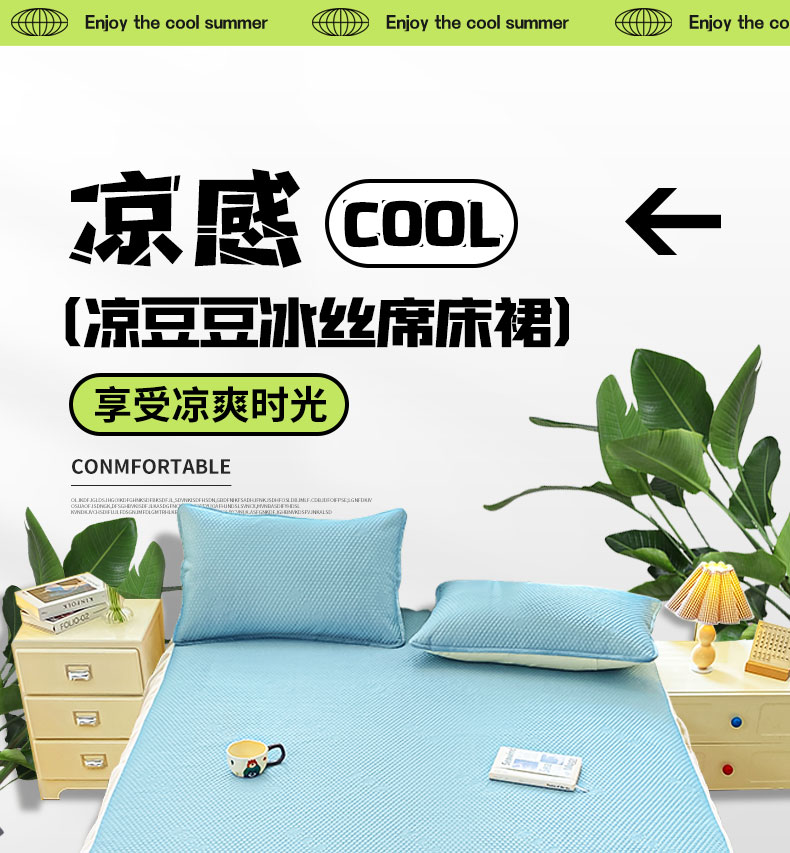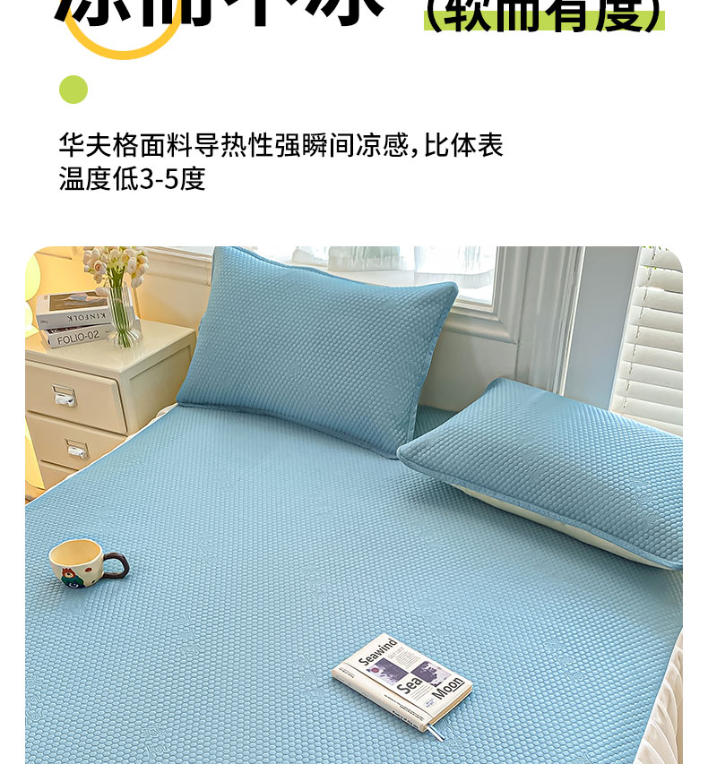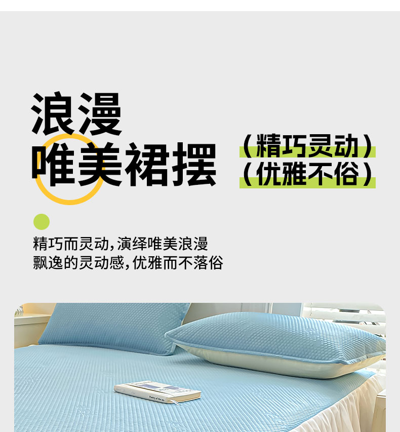 好老表被业 2025新款冰豆豆凉席床裙款 蓝色