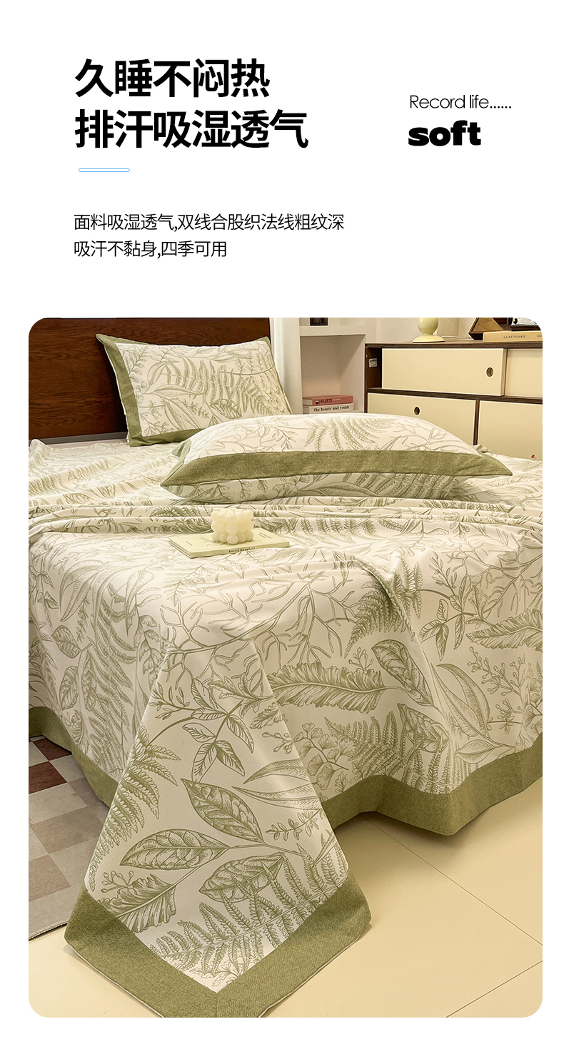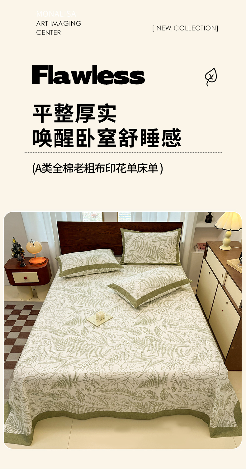 宜代光年 2025新款全棉老粗布数码印花床单(拼角工艺) 叶语