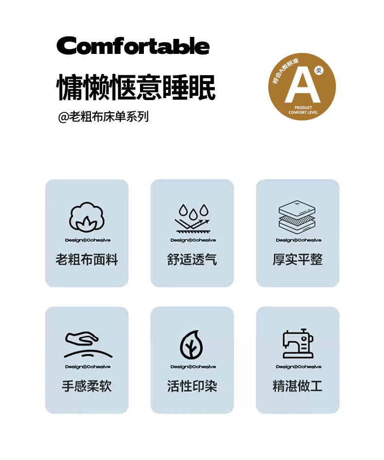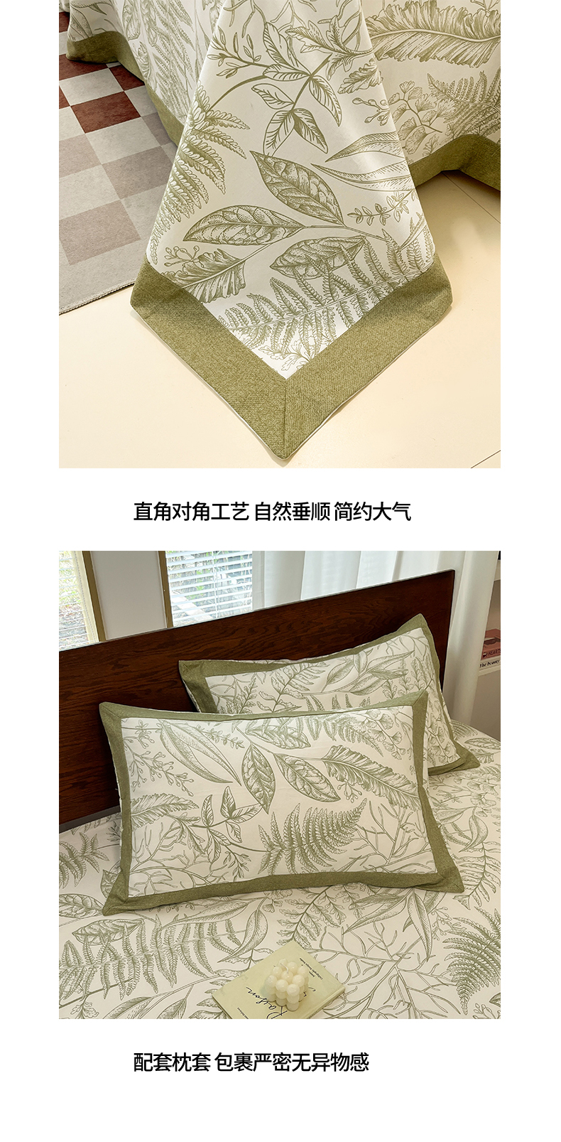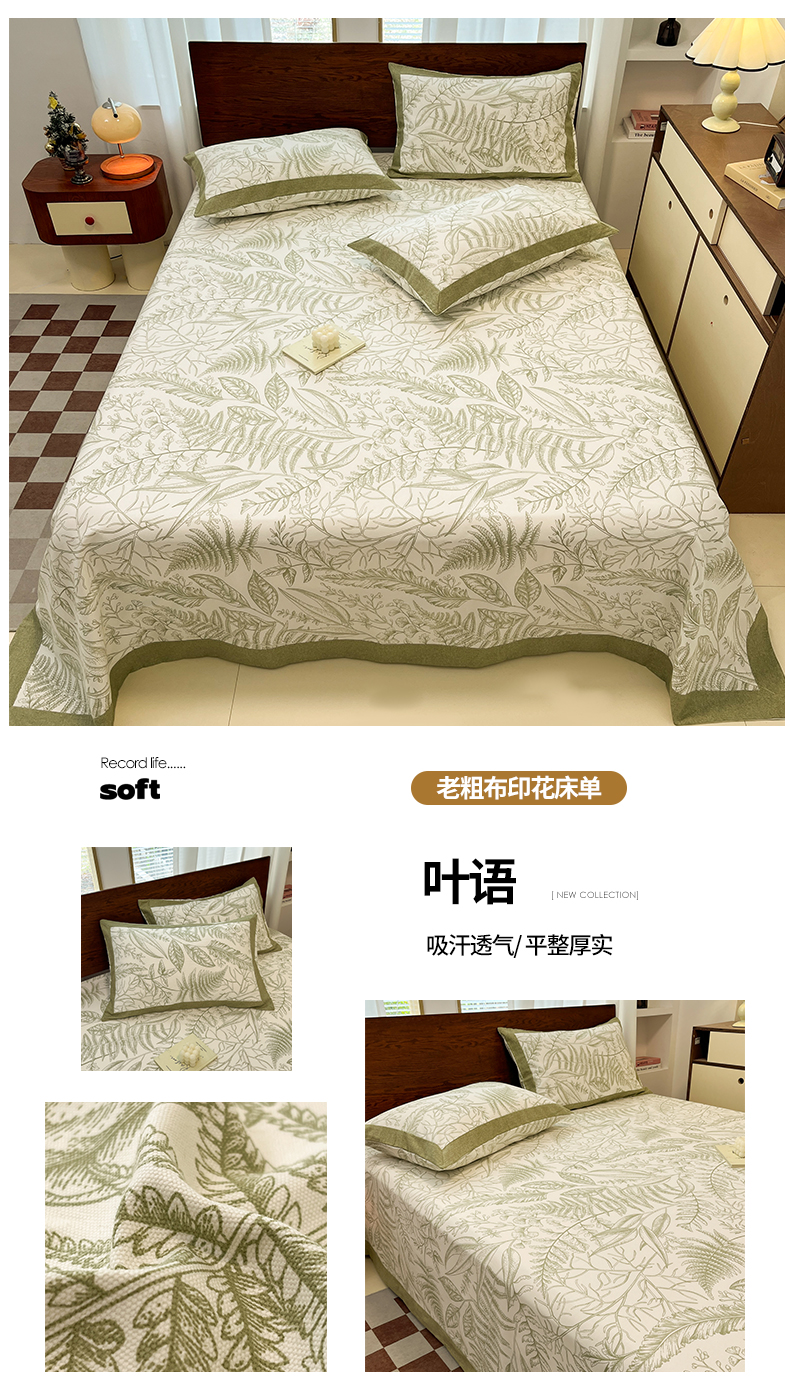 商品名称:宜代光年 2025新款全棉老粗布数码印花床单(拼角工艺) 叶语
