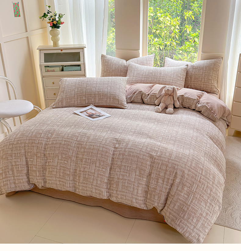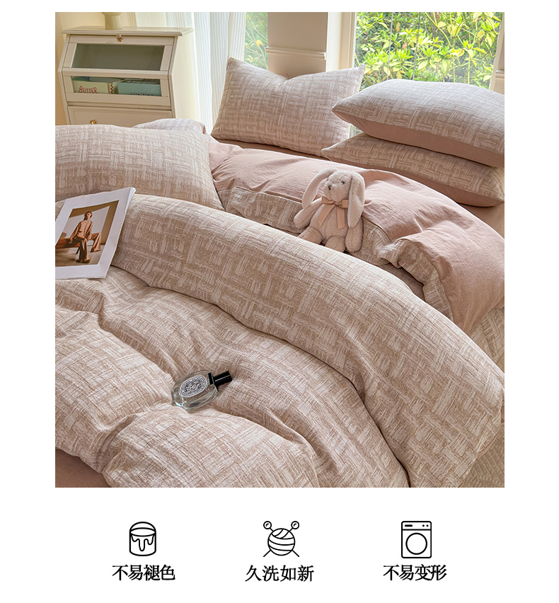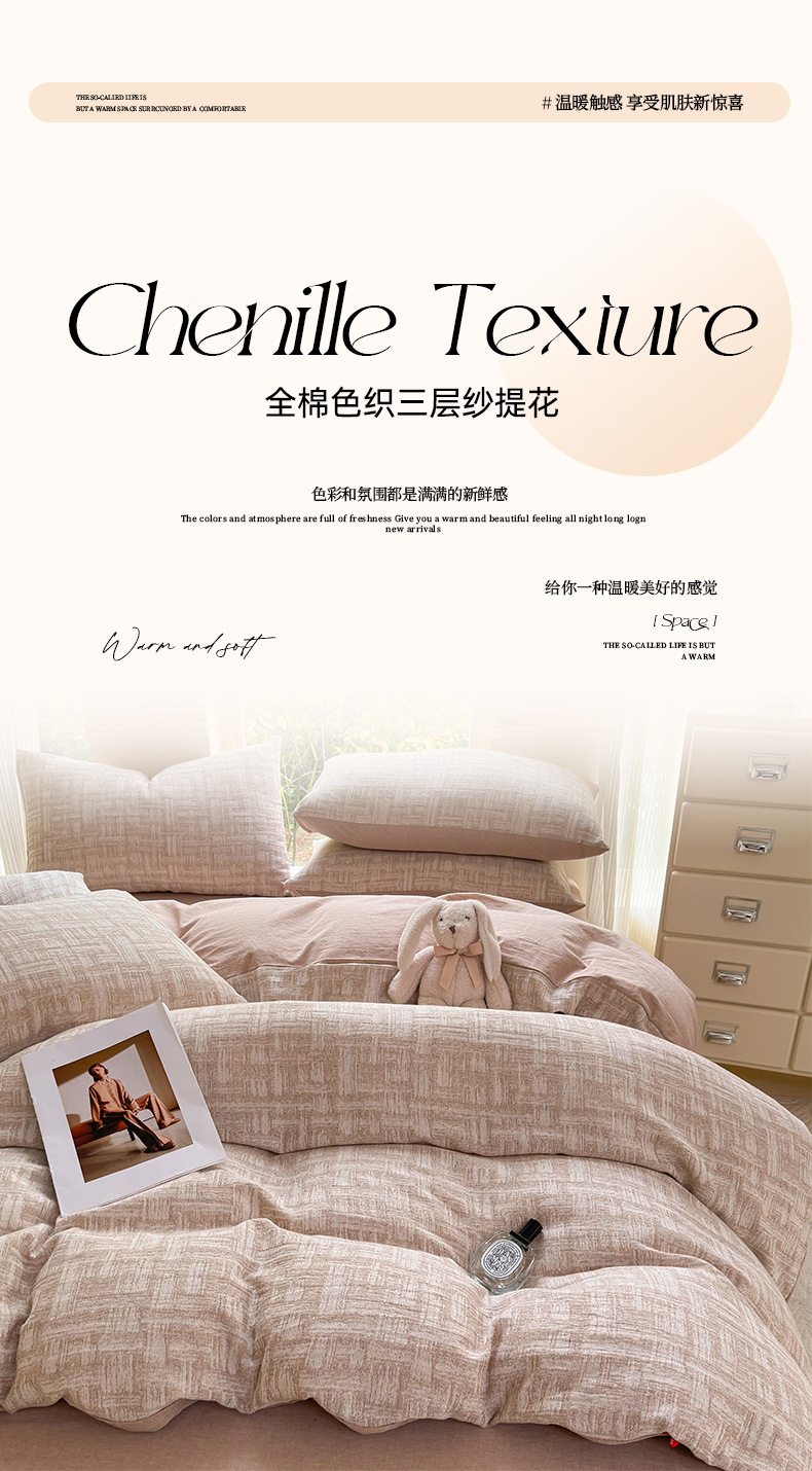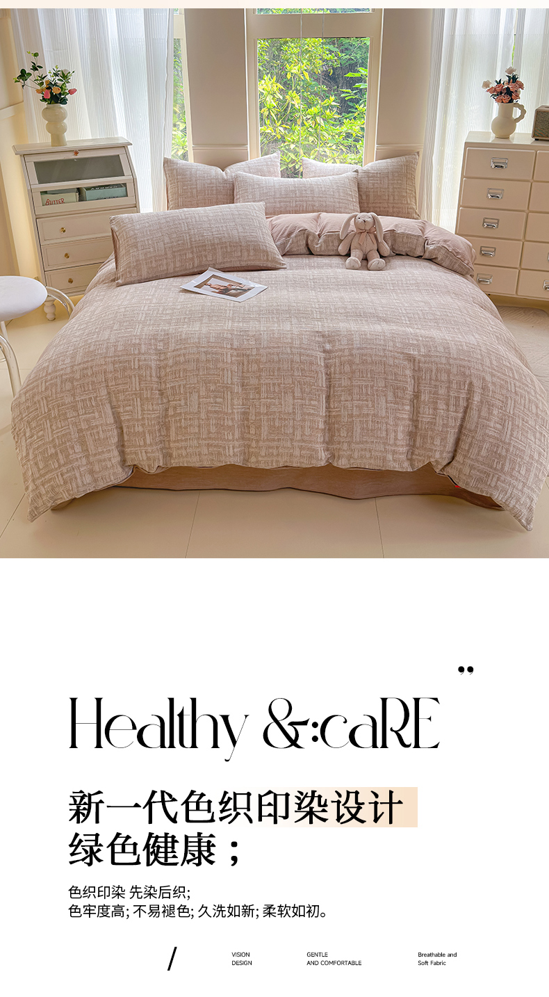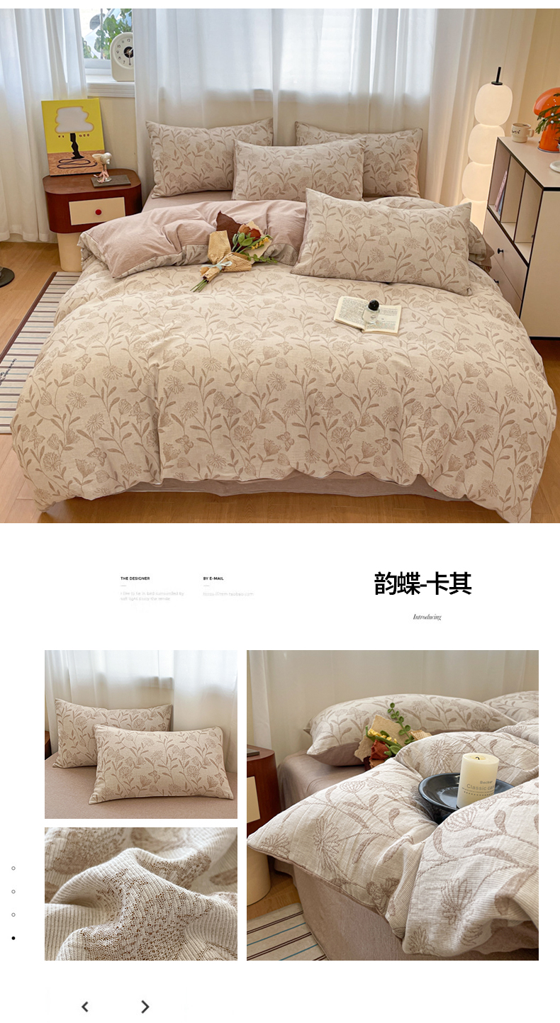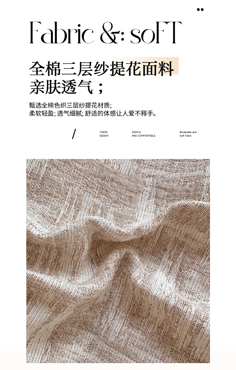 当前位置: 91家纺网 > 商品网购 > 床品套件 > 四件套 > 色织四件套 > 菡宝 2025新款a类母婴级纯棉全棉纯棉色织三层纱提花系列四件套 米亚-卡其