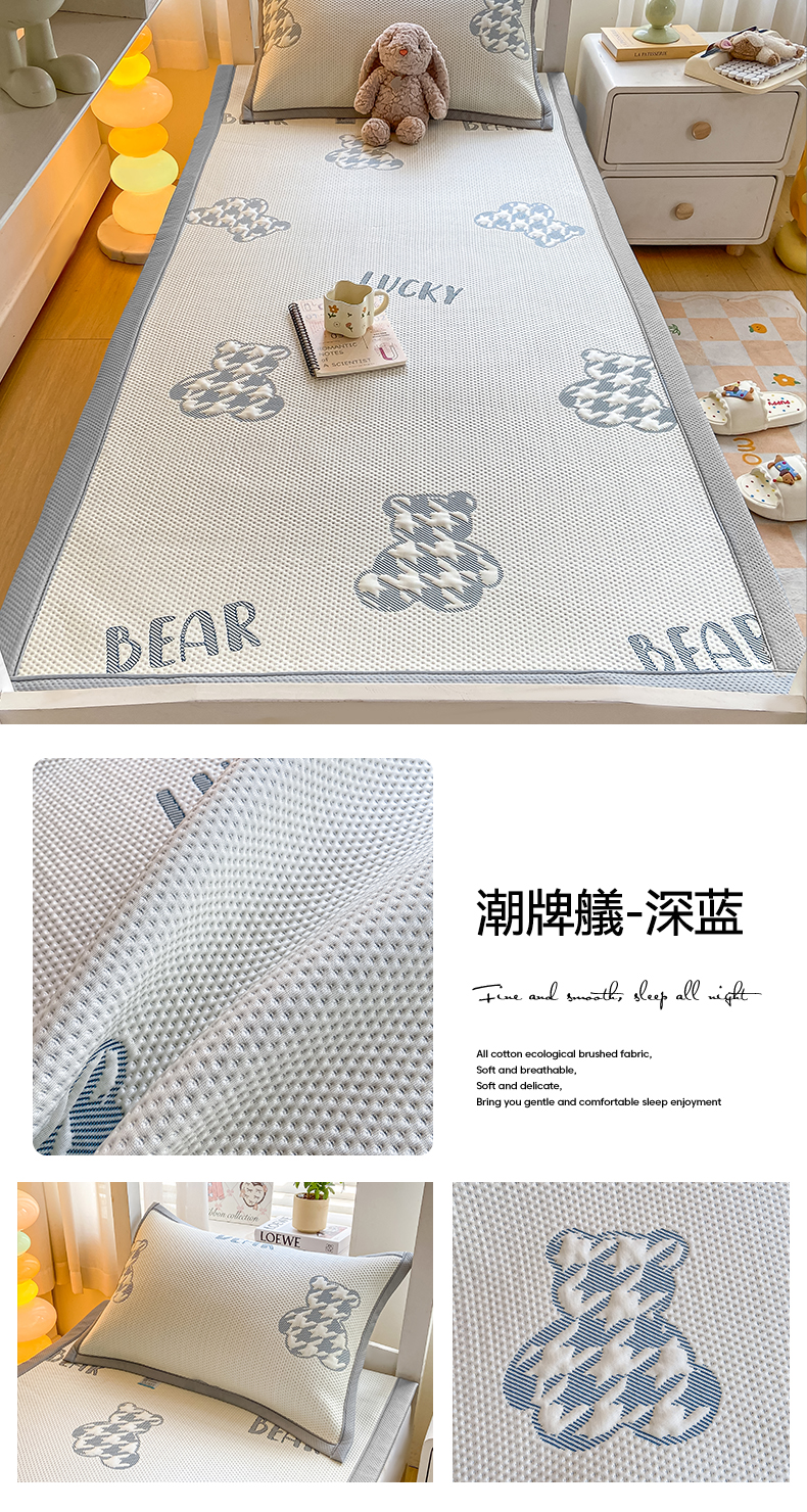 • 91家纺网 家纺一手货源 找家纺 耐思2025a类冰豆豆提花凉席学生款潮牌熊系列 潮牌熊-深蓝