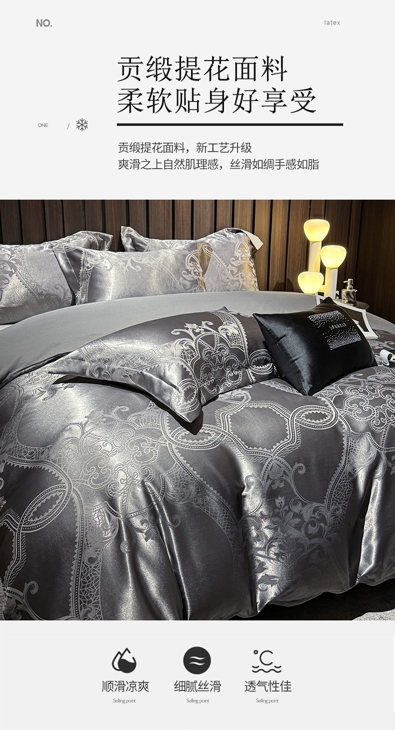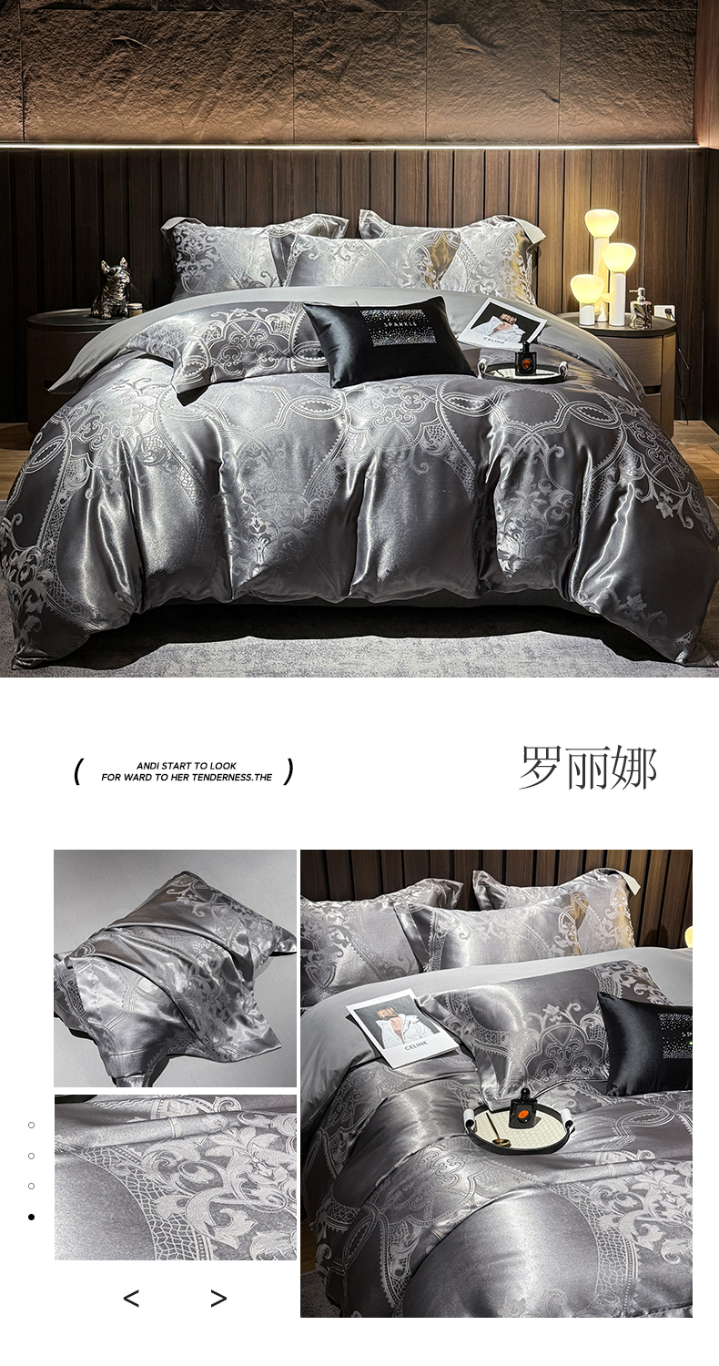 当前位置: 91家纺网 > 商品网购 > 床品套件 > 四件套 > 其它四件套 > 七夜居 2026新款直播爆款欧式轻奢贡缎提花磨毛四件套 罗丽娜