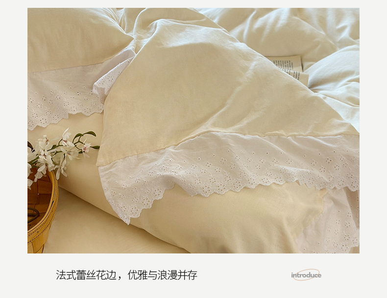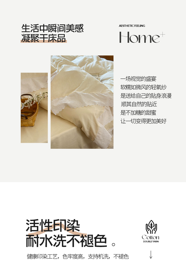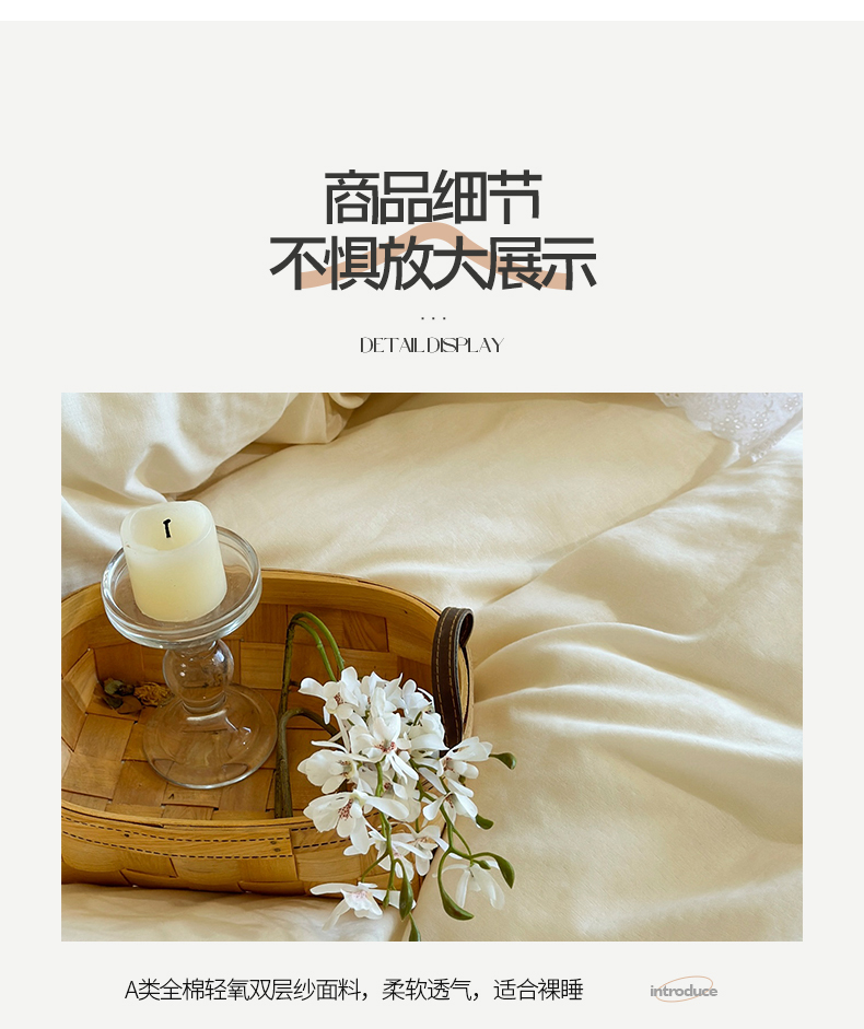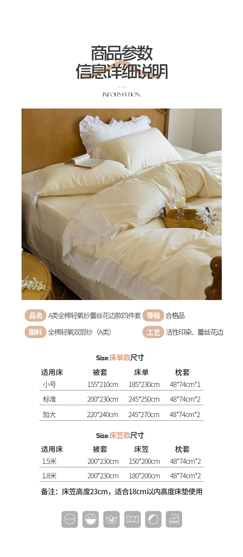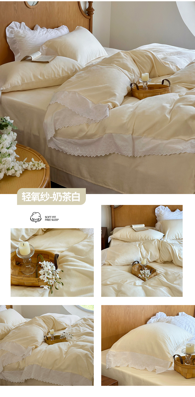 商品名称:窝米 2025新款全棉纯棉轻氧纱蕾丝花边款四件套系列 轻氧纱-奶茶白