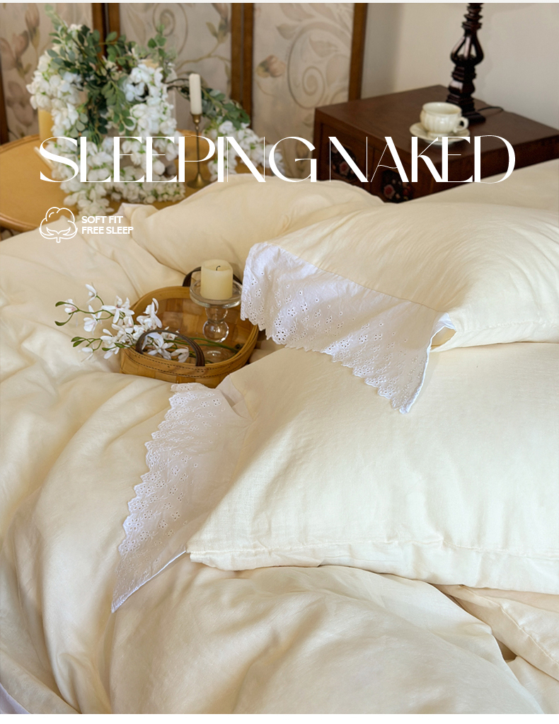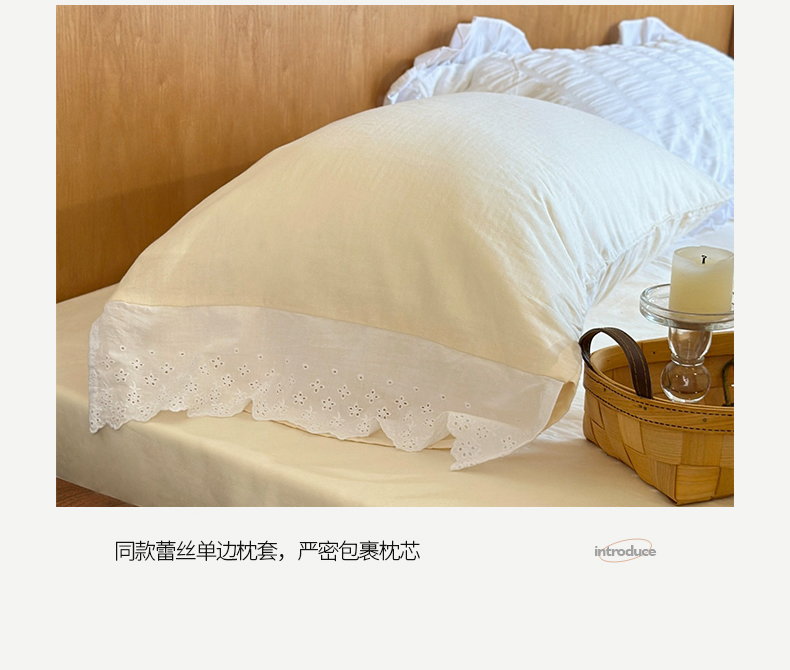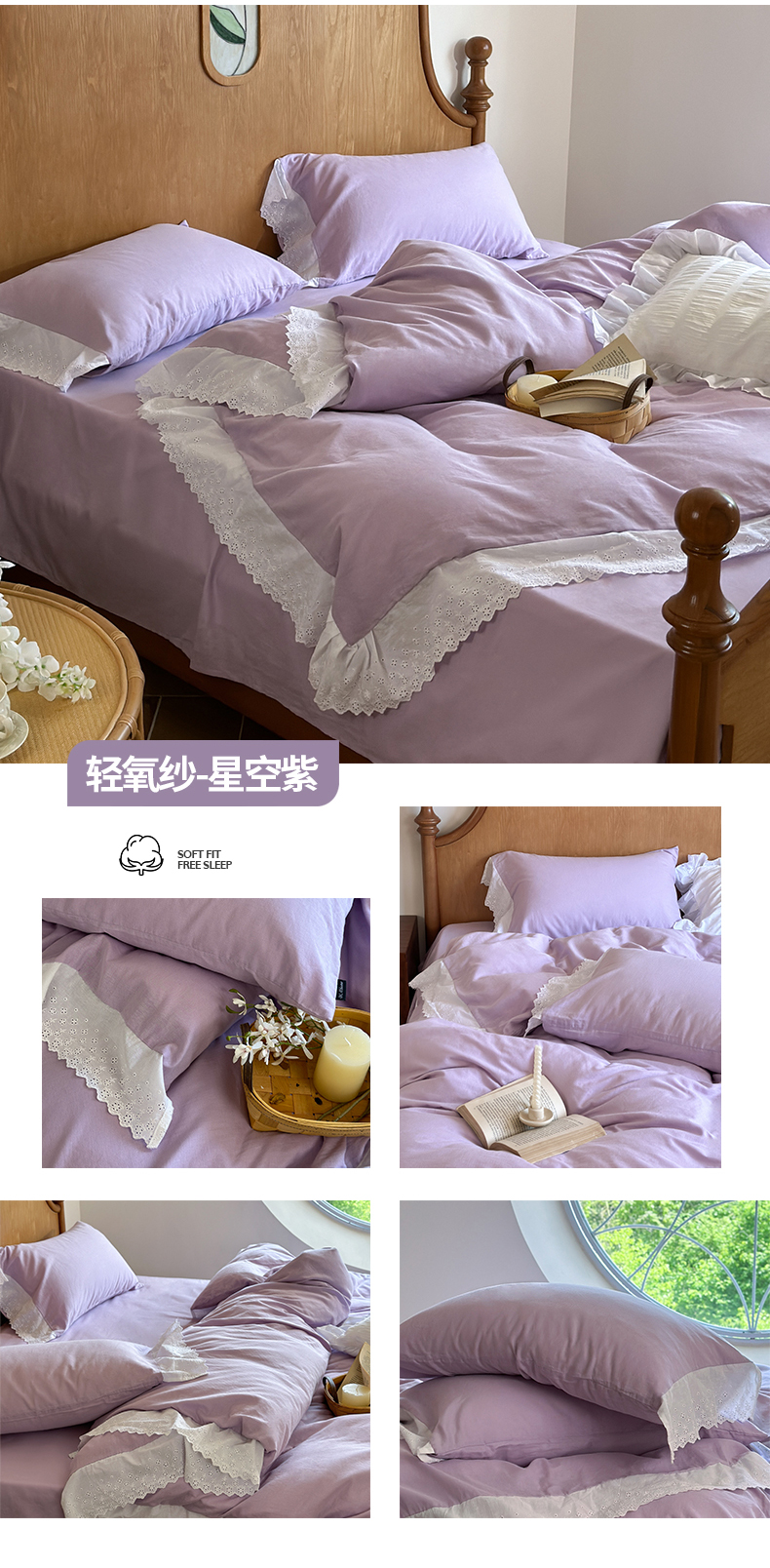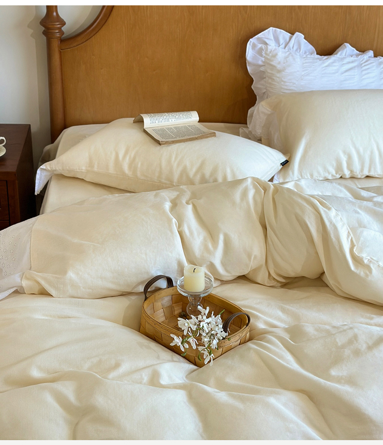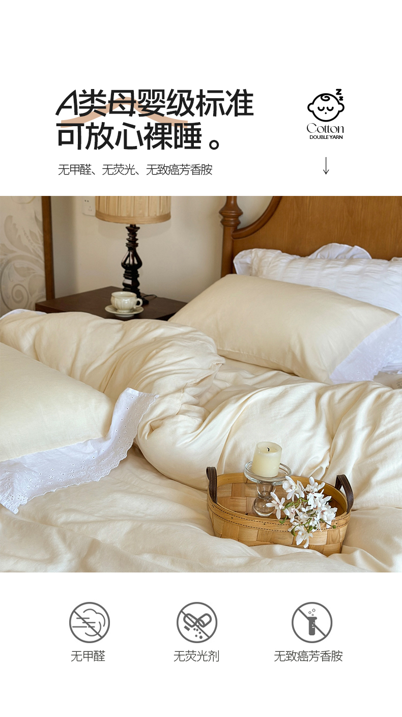 商品名称:窝米 2025新款全棉纯棉轻氧纱蕾丝花边款四件套系列 轻氧纱-奶茶白