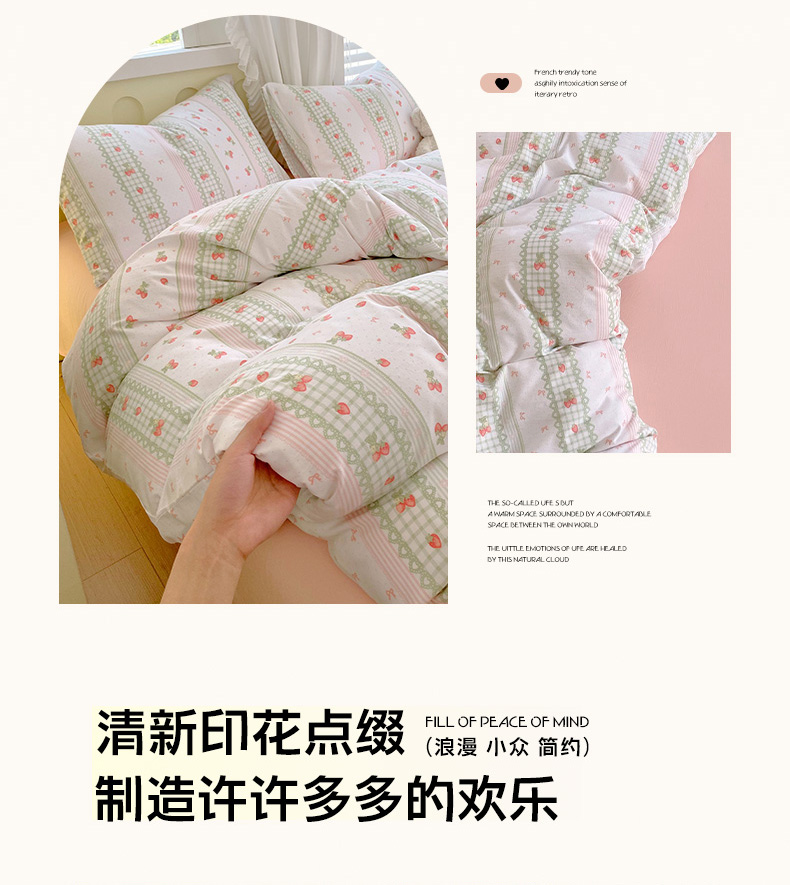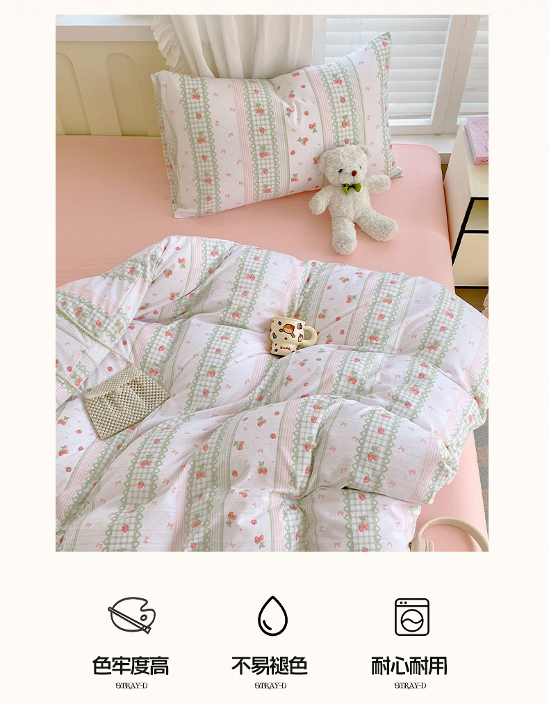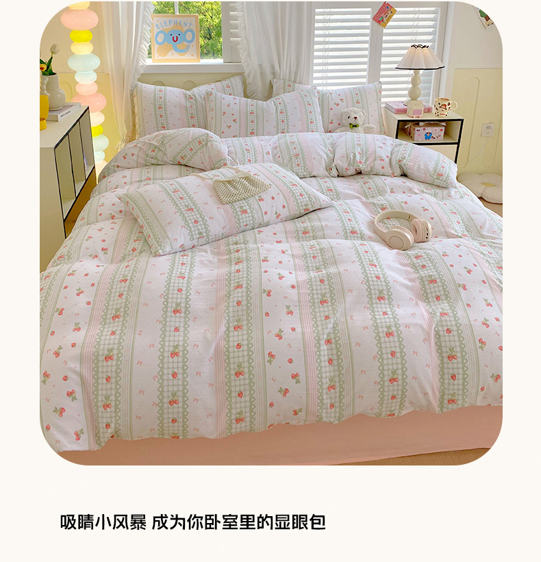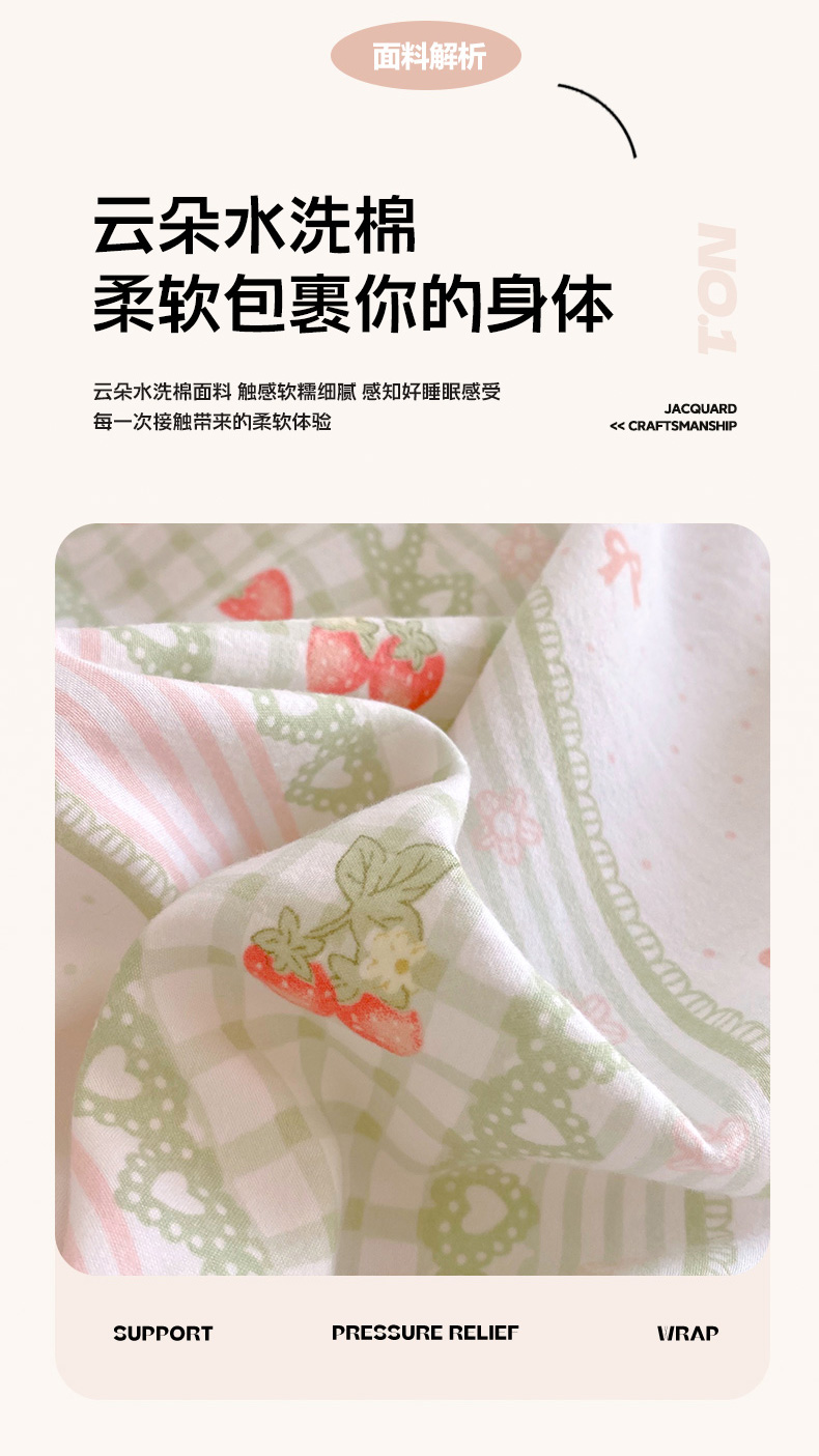 当前位置: 91家纺网 > 商品网购 > 床品套件 > 四件套 > 水洗棉四件套 > 雨彤家纺 2025年新款软糯糯云朵水洗棉印花四件套 亲亲草莓