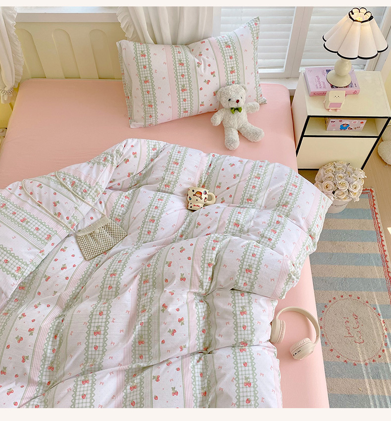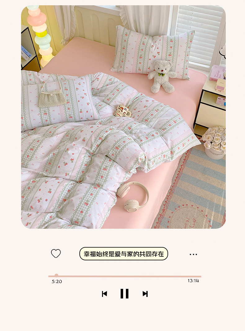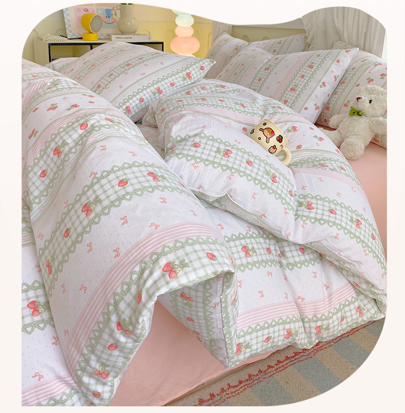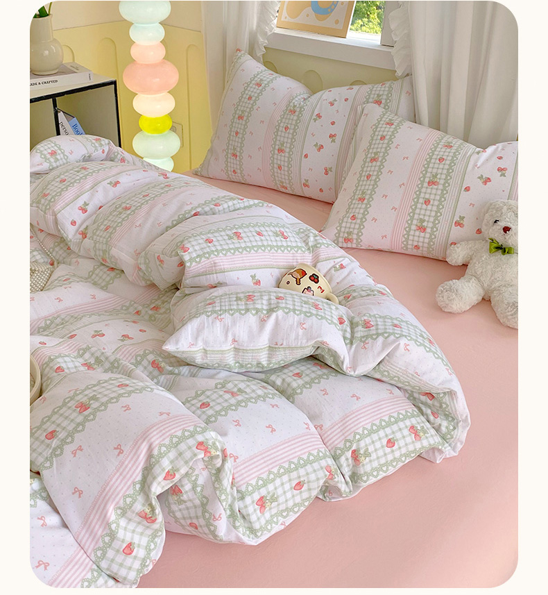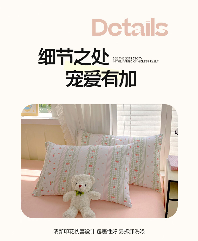 当前位置: 91家纺网 > 商品网购 > 床品套件 > 四件套 > 水洗棉四件套 > 雨彤家纺 2025年新款软糯糯云朵水洗棉印花四件套 亲亲草莓