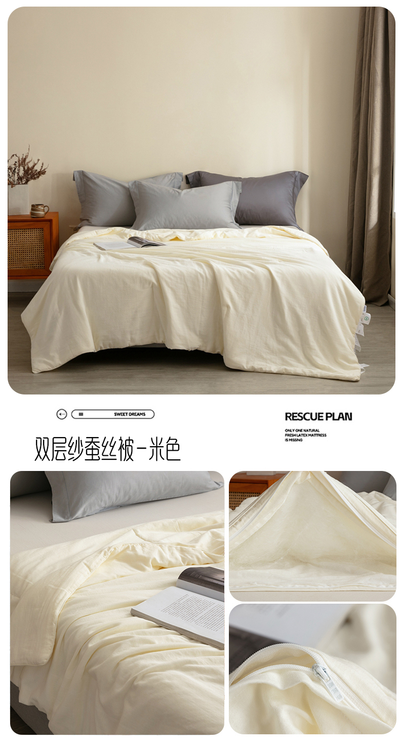 商品名称:蚕阿婆 2025新款纯棉双层纱蚕丝被蚕丝空调夏凉被 米色