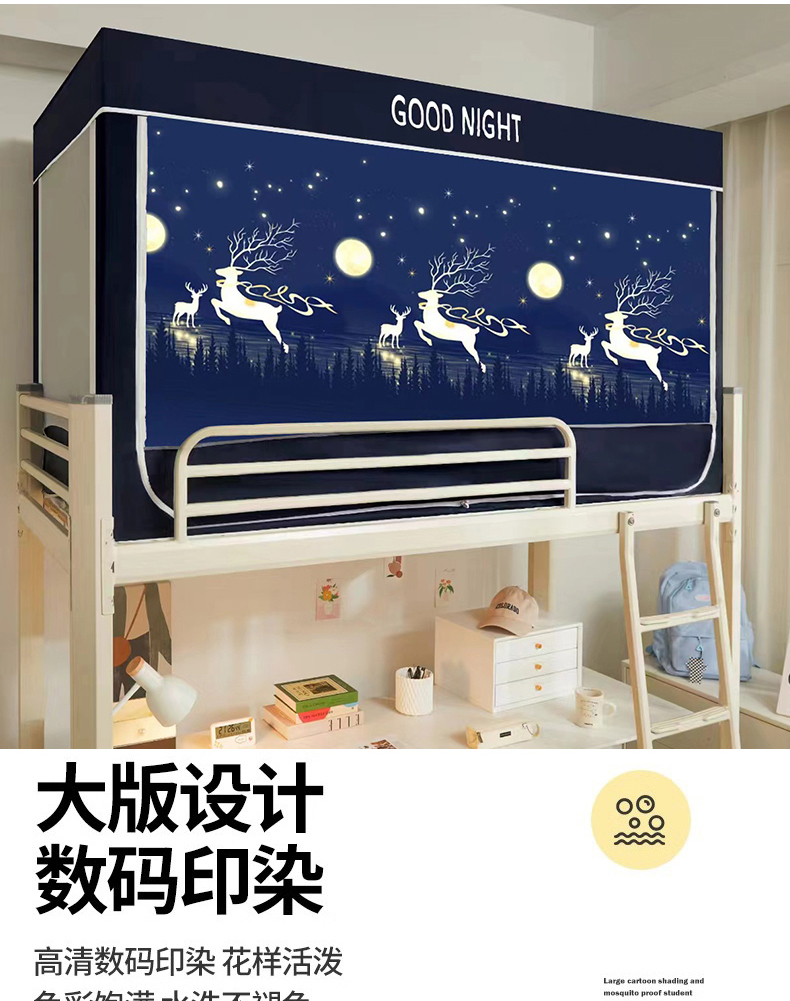 (总)锦逸家居 2025新款防遮光防蚊学生床帘式蚊帐,奔月鹿,鲸鱼灰色,太空人,未来可期