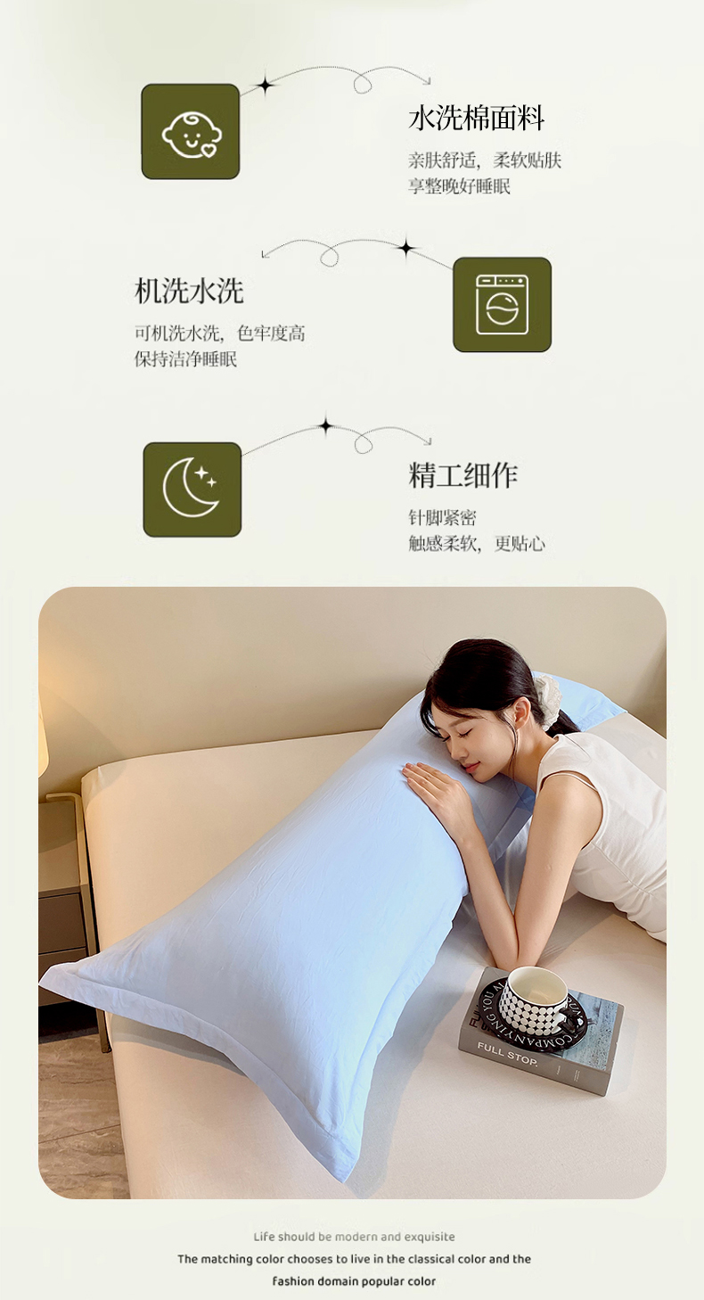 商品名称:雨彤家纺 2025年新款A类纯色水洗棉枕套 天蓝