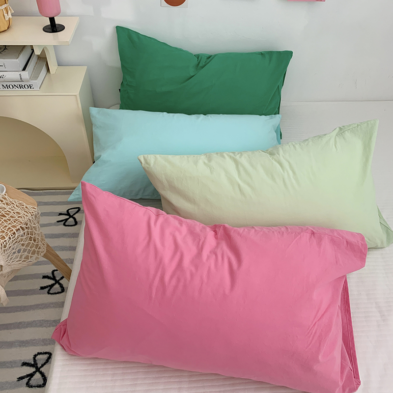 柚可家居 2024新款水洗棉40支全棉色织单枕套纯色系列四 桃红
