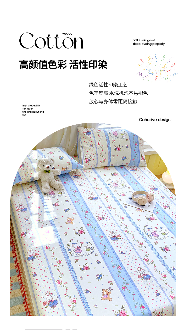 • 91家纺网 家纺一手货源 找家纺 金鑫汇家纺 2025新款A类全棉老粗布床单床笠 老粗布·快乐萌兔蓝