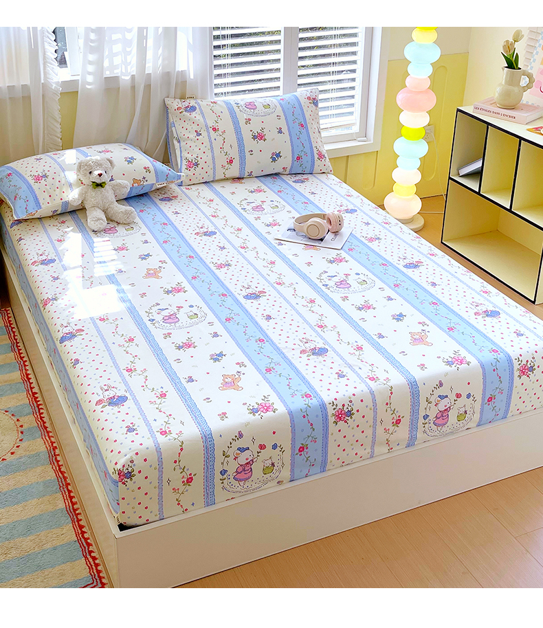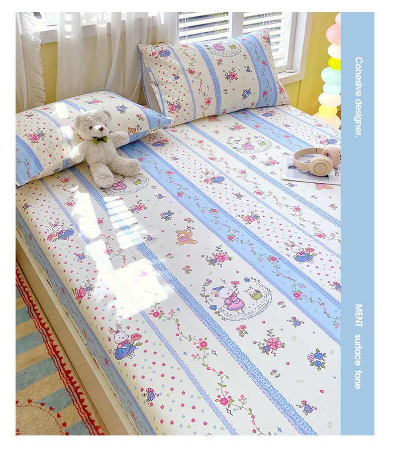 金鑫汇家纺 2025新款A类全棉老粗布床单床笠 老粗布·快乐萌兔蓝