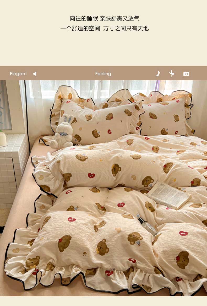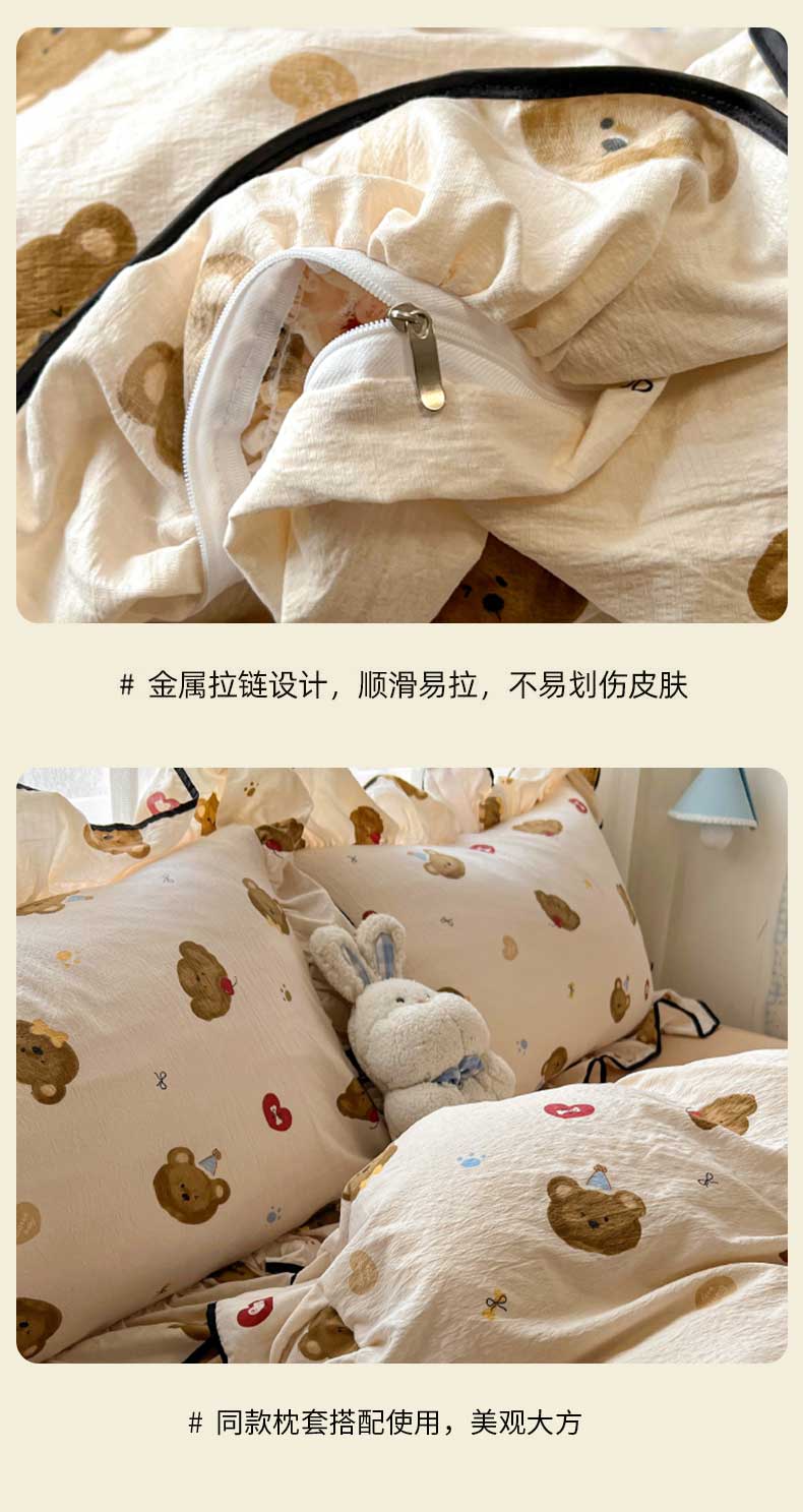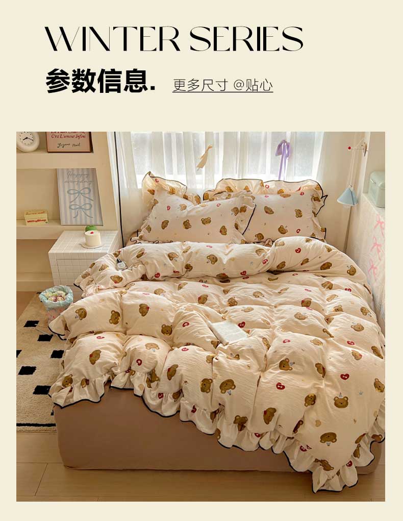 当前位置: 91家纺网 > 商品网购 > 床品套件 > 四件套 > 水洗棉四件套 > 繁花家居 2025春夏新款学生季韩式云感针织棉大花边木耳边四件套 小熊多多