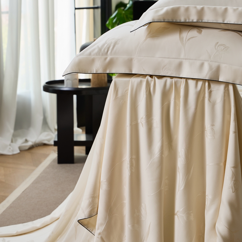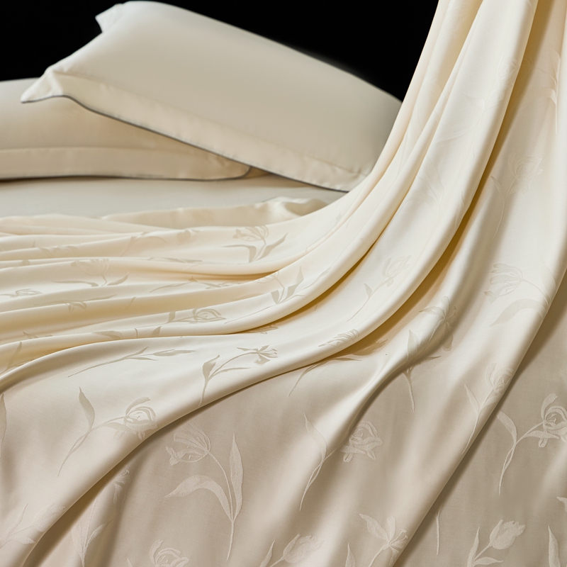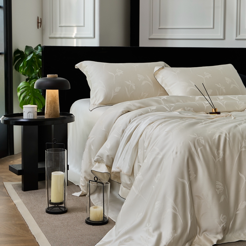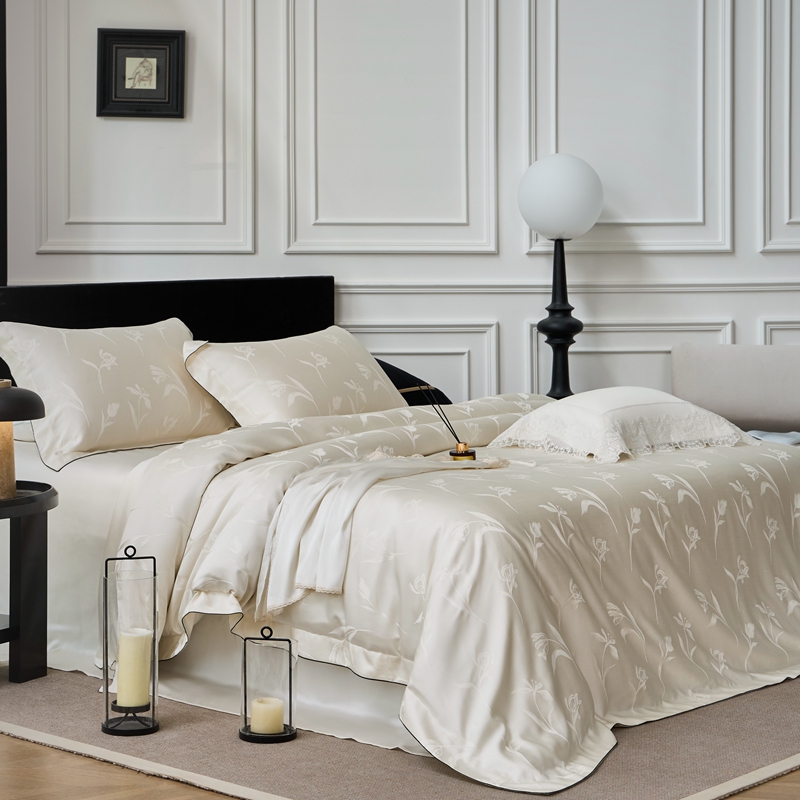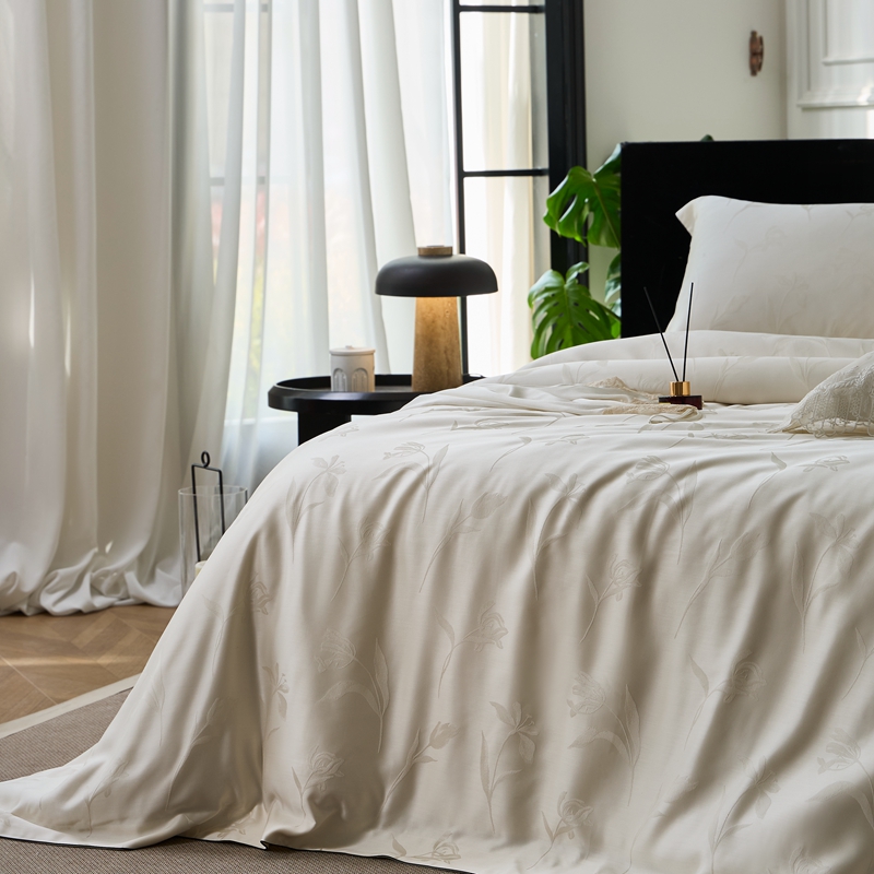 涞澳家纺 2025新款天丝提花四件套 叶茂-白