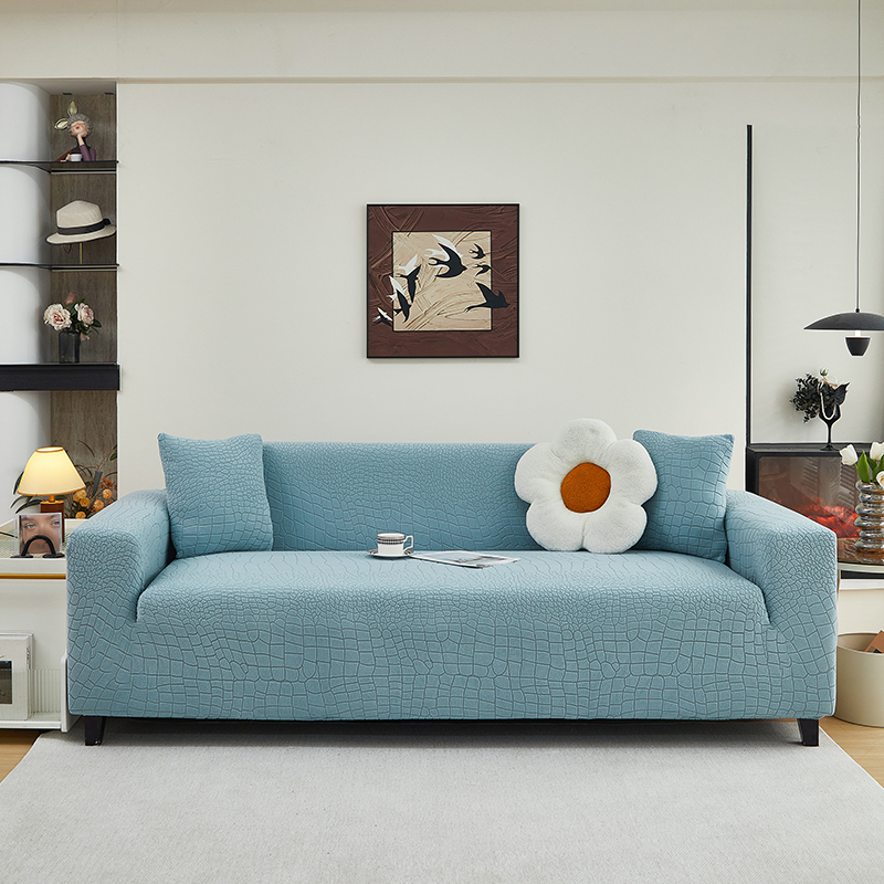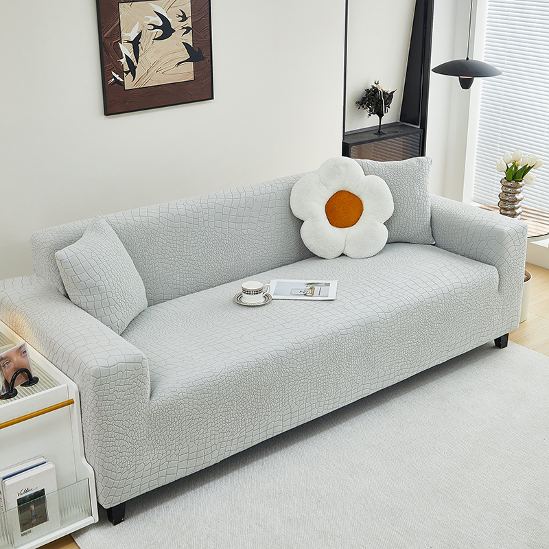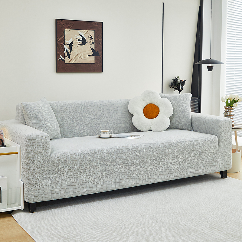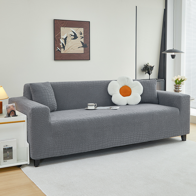 丝绮鹿 2025新款雕花绒水立方沙发套松紧款(三人图) 深灰