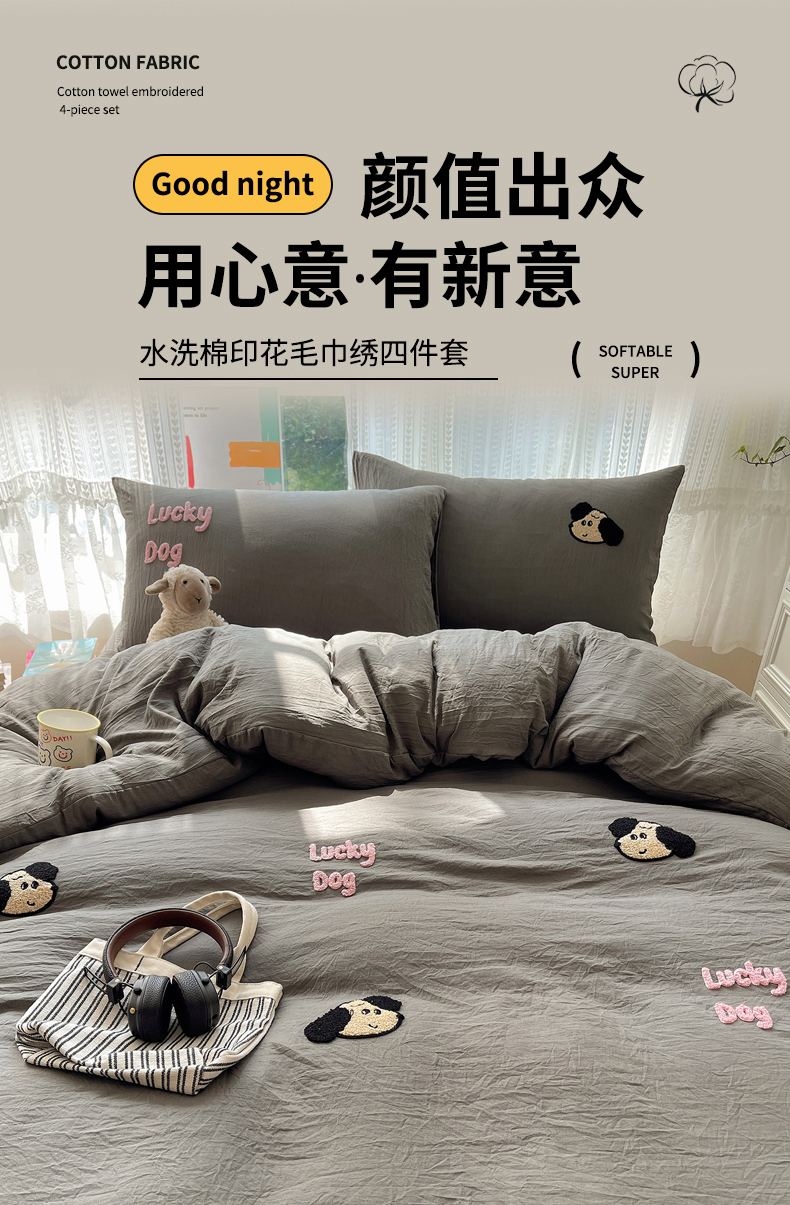 (总)优兰朵 2025新款爆款宿舍可爱水洗棉毛巾绣四件套
