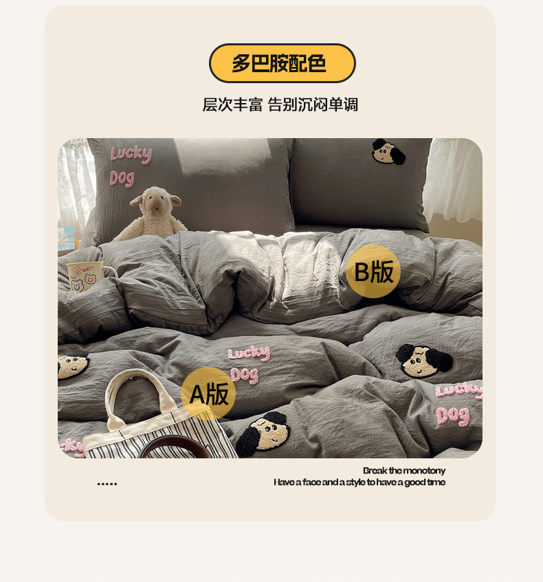 (总)优兰朵 2024爆款新款纯色双拼水洗棉毛巾绣卡通四件套超柔亲肤系列-多彩应用,多彩应用—奶茶色,多彩应用—少女粉,多彩应用—月雾灰