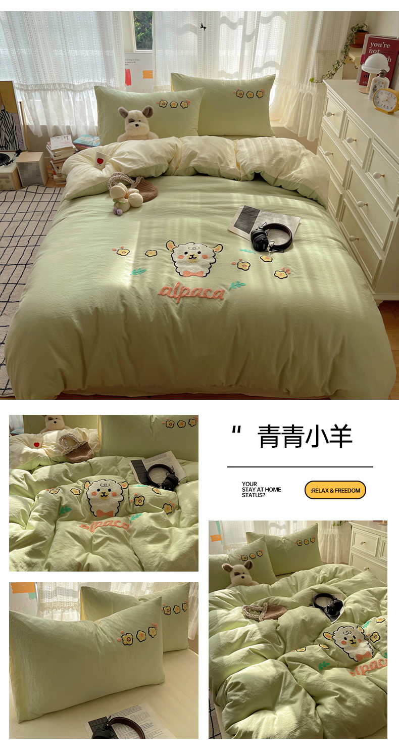 (总)优兰朵 2025新款爆款宿舍可爱水洗棉毛巾绣四件套,彩虹鹿语,焦糖大耳兔,奶糖大耳兔,青青小羊,小狗日记