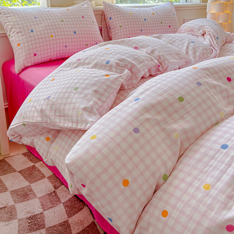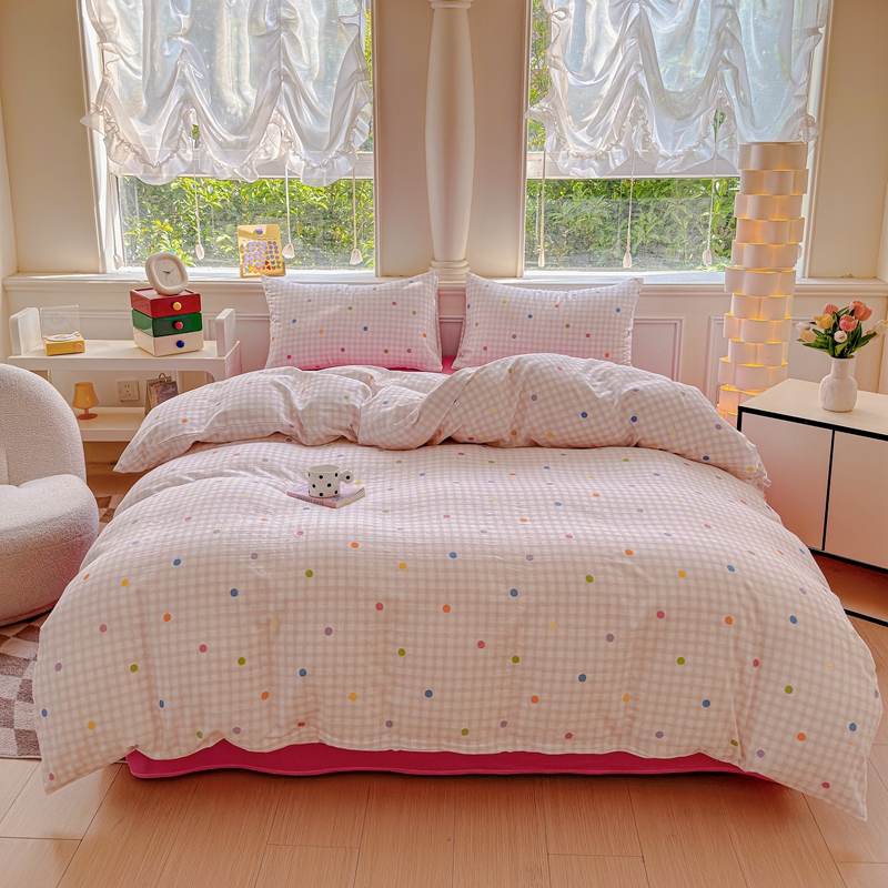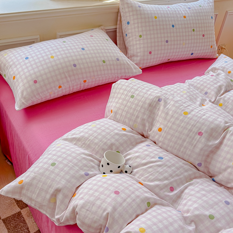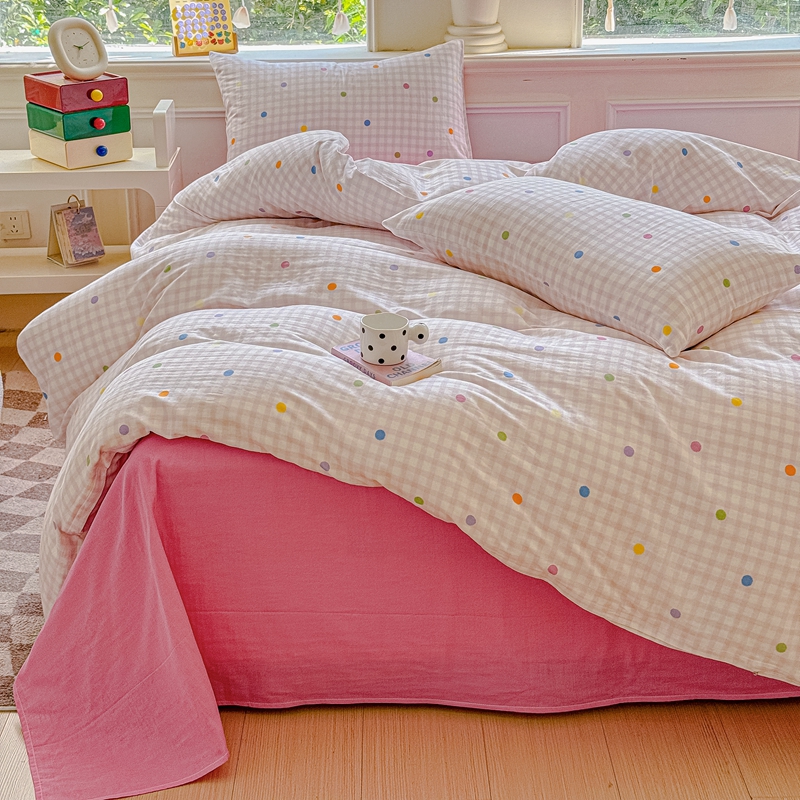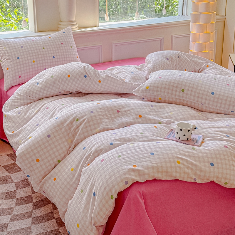 当前位置: 91家纺网 > 商品网购 > 床品套件 > 四件套 > 双层纱四件套 > 感遇家纺2025新款全棉双层纱纤柔四件套 少女甜心